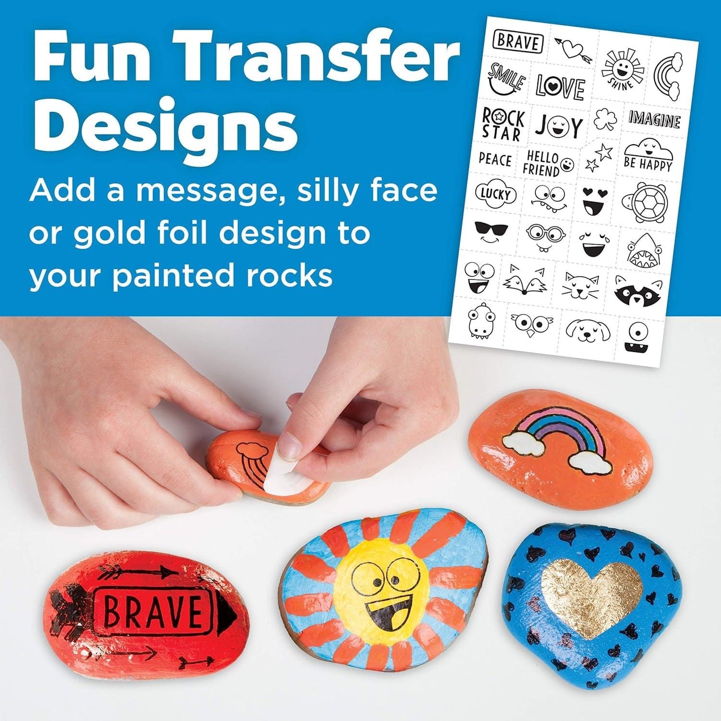 - SCREEN-FREE KIDS ACTIVITIES: Rock painting is a fun arts and craft activity that allows children to express themselves through the power of creativity. Use the included transfers to guide your rock painting designs, or create your own unique work of art.