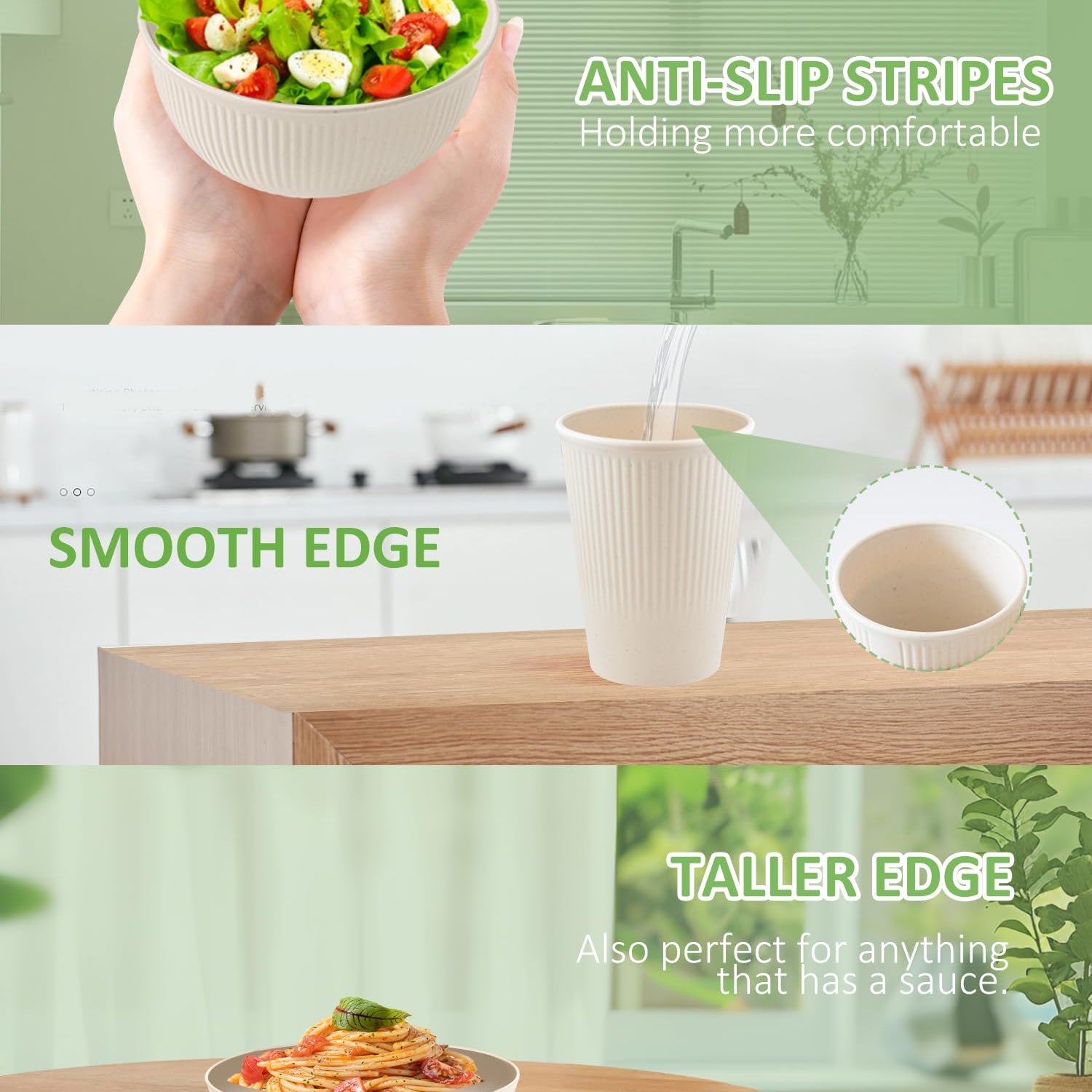 HIERYQHE 24pcs Wheat Straw Dinnerware Sets, Unbreakable Reusable Dinnerware Set for Outdoor/Kitchen, Outdoor Camping Cups Plates and Bowls Sets, Dishwasher Safe Wheat Straw Dinnerware Set for 8