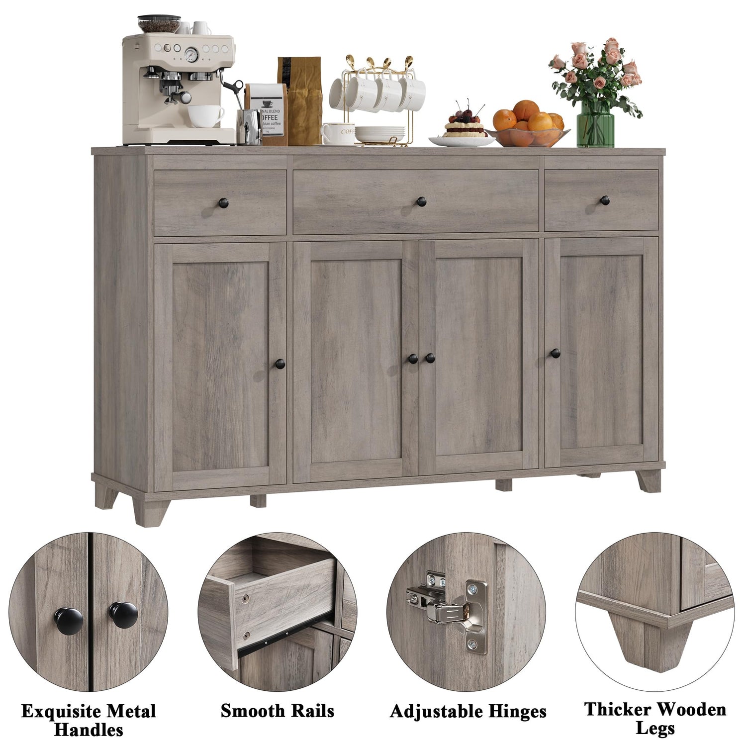 HIFIT 55" Large Kitchen Buffet Cabinet with Storage Drawers, Farmhouse Sideboard Buffet Table Storage Cabinet with Doors and Shelves, Wood Coffee Bar Cabinet for Kitchen Dining Living Room, Ash Grey