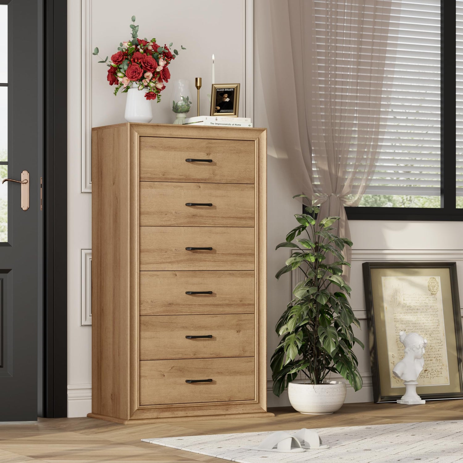 - Large Storage Dresser: With 6 large drawers and a spacious tabletop, this tall dresser provides a large amount of storage space; Therefore, you can store all kinds of household; You can purchase several pieces for your rooms to enlarge your storage space