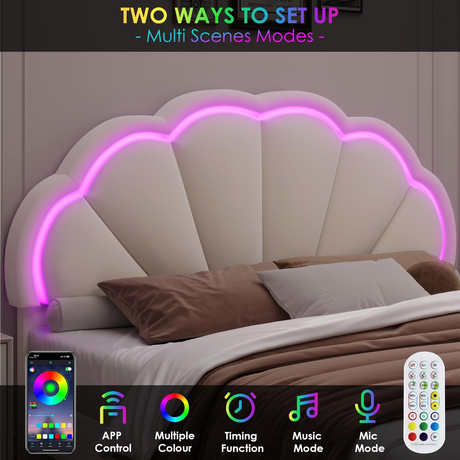 The highlight of this bed frame is its innovative LED lighting system, which features smart light strips capable of displaying over 16 million colours. Choose from more than 20 preset light effects, including various brightness levels and dynamic modes such as music sync, where the lights rhythmically pulse to your favourite tunes, creating an immersive atmosphere that feels like a personal concert in your home.