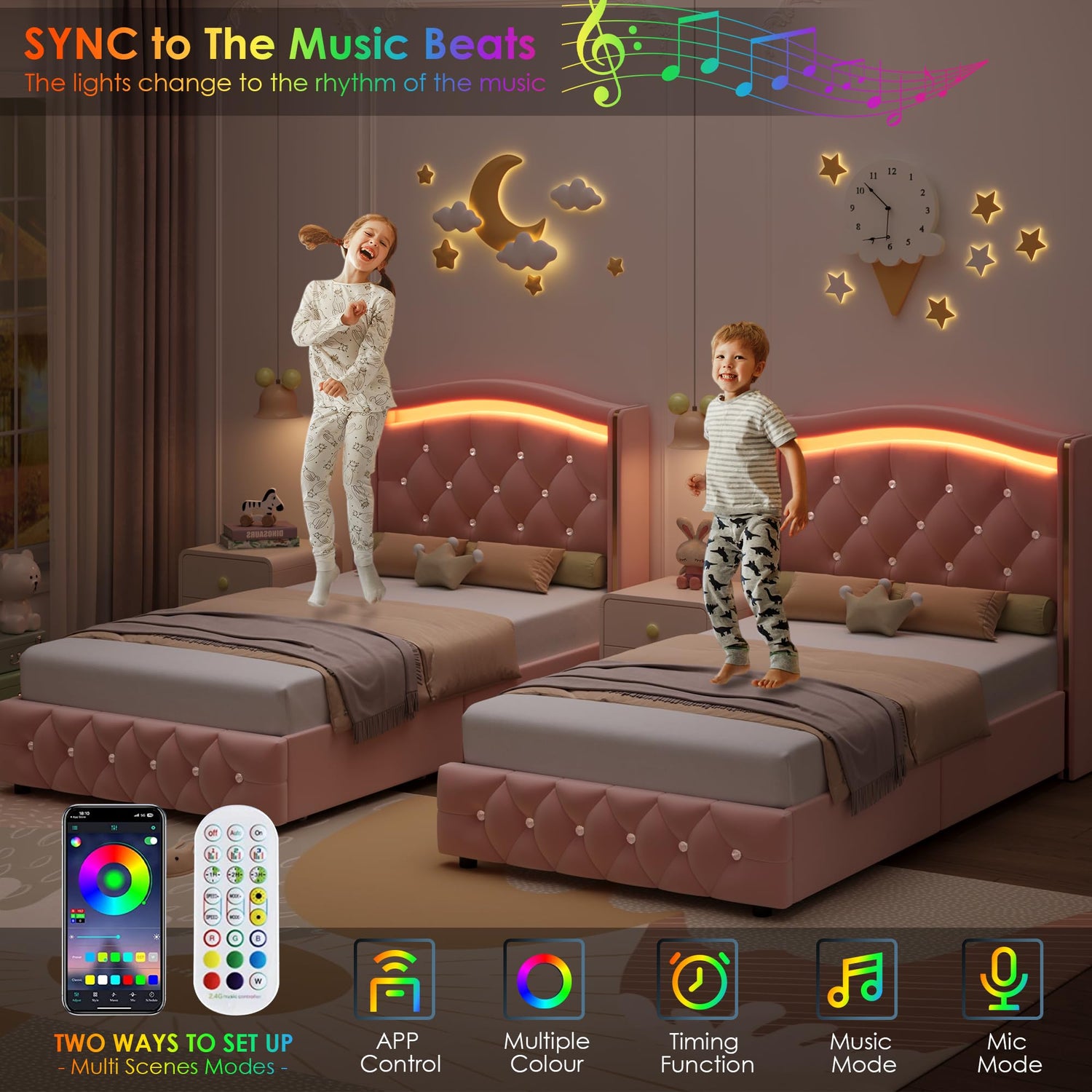 - IDEAL BED FOR ALL PRINCESSES: This elegant bed merges style and functionality, featuring luxurious crystal tufting that sparkles in the light. The soft velvet fabric invites coziness, while its built-in LED strips, which are customizable in colors and modes, create a magical atmosphere for any mood. It seamlessly fits various decor styles, inspiring relaxation and creativity, making it an enchanting centerpiece for any girl's room