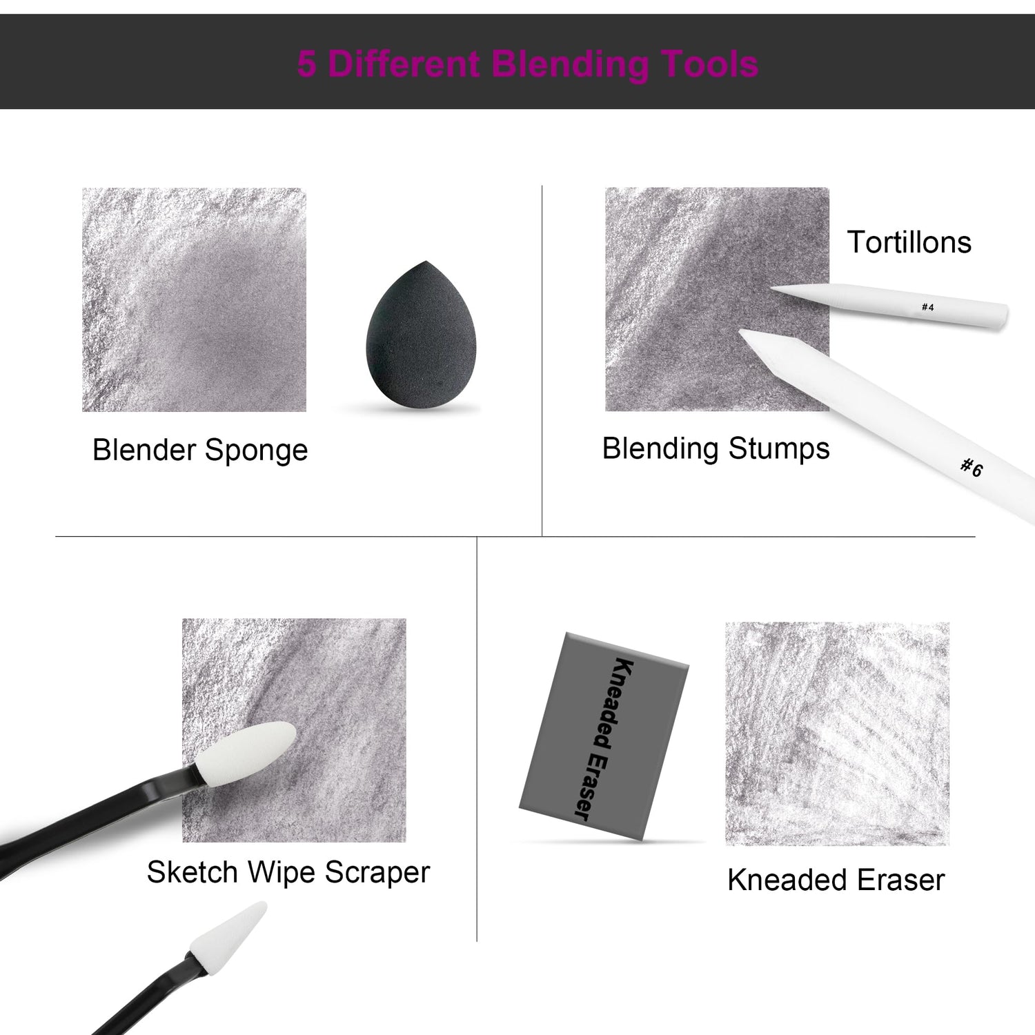 - 【Extra Drawing Sketching Supplies Kit 】This sketching set includes almost all the accessories for sketching and drawing,includes 8 blending stumps(#1-#8),4 tortillions(#1-#4),2 sketch wipe scrapers,20 replacement heads,1 blender sponges,1 kneaded and 1 vinyl eraser,1 sandpaper block,2 sharpeners,1 pencil extender,1 plastic ruler,1 art knife,1 masking tape,2 binder clips.These extras are essential for artists and beginners.