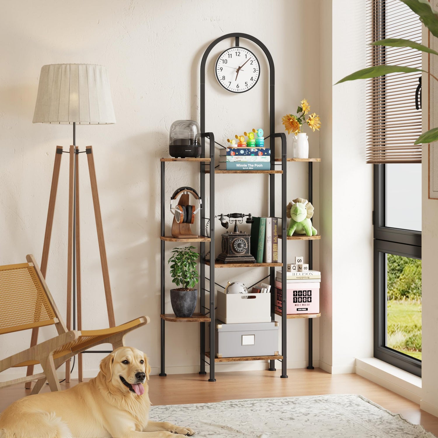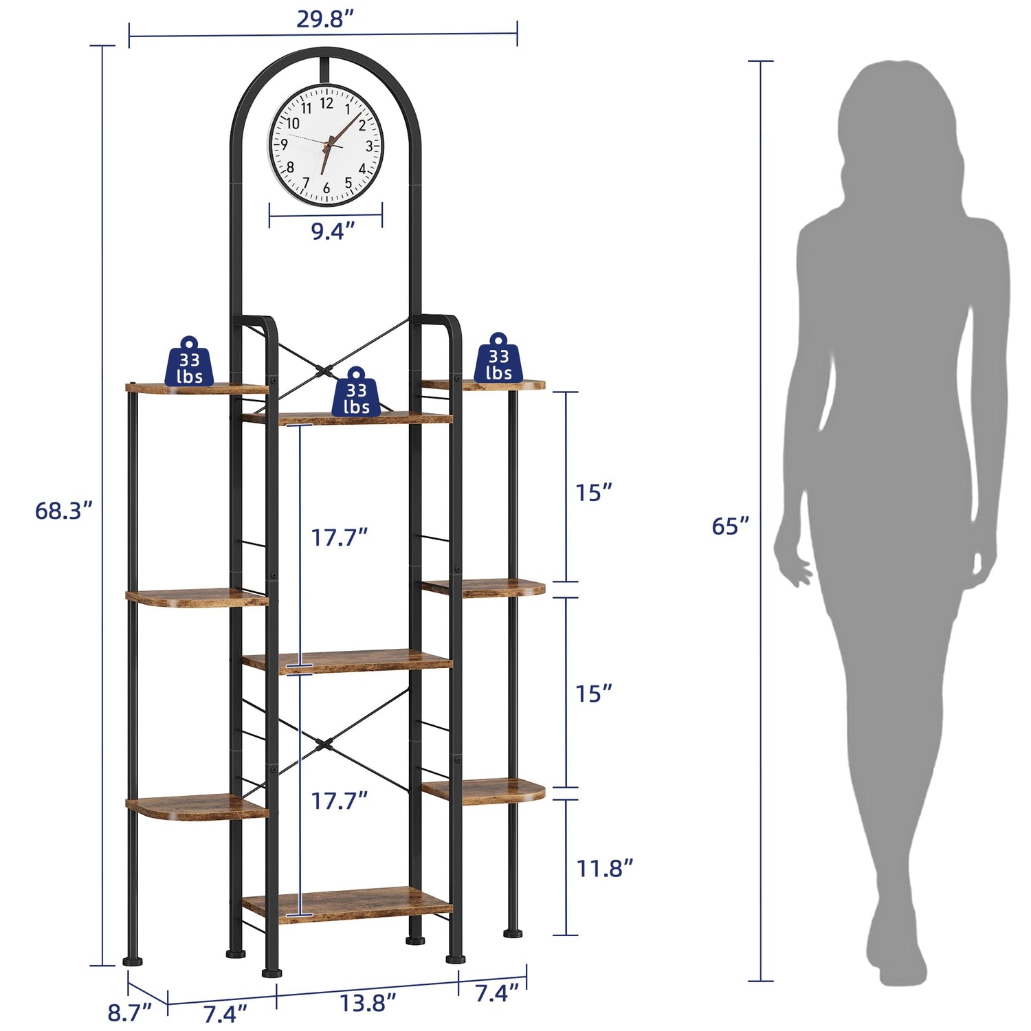 - 【Built-in Wall Clock for Timely Style】This isn’t just a bookshelf—it features a built-in clock at the top, keeping time stylishly while adding a conversation piece to your décor. Whether used as a bookcase, display shelf, or daily organizer, it combines practicality and visual appeal in one striking unit