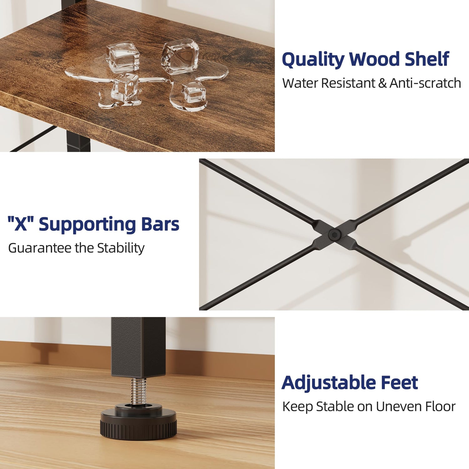 - 【Sturdy Structure That Lasts】Crafted from heavy-duty steel and high-quality wood, this bookcase offers long-term durability and strength. Its reinforced frame ensures that your book shelves remain stable and secure, even when fully loaded with books, décor, or tech gadgets