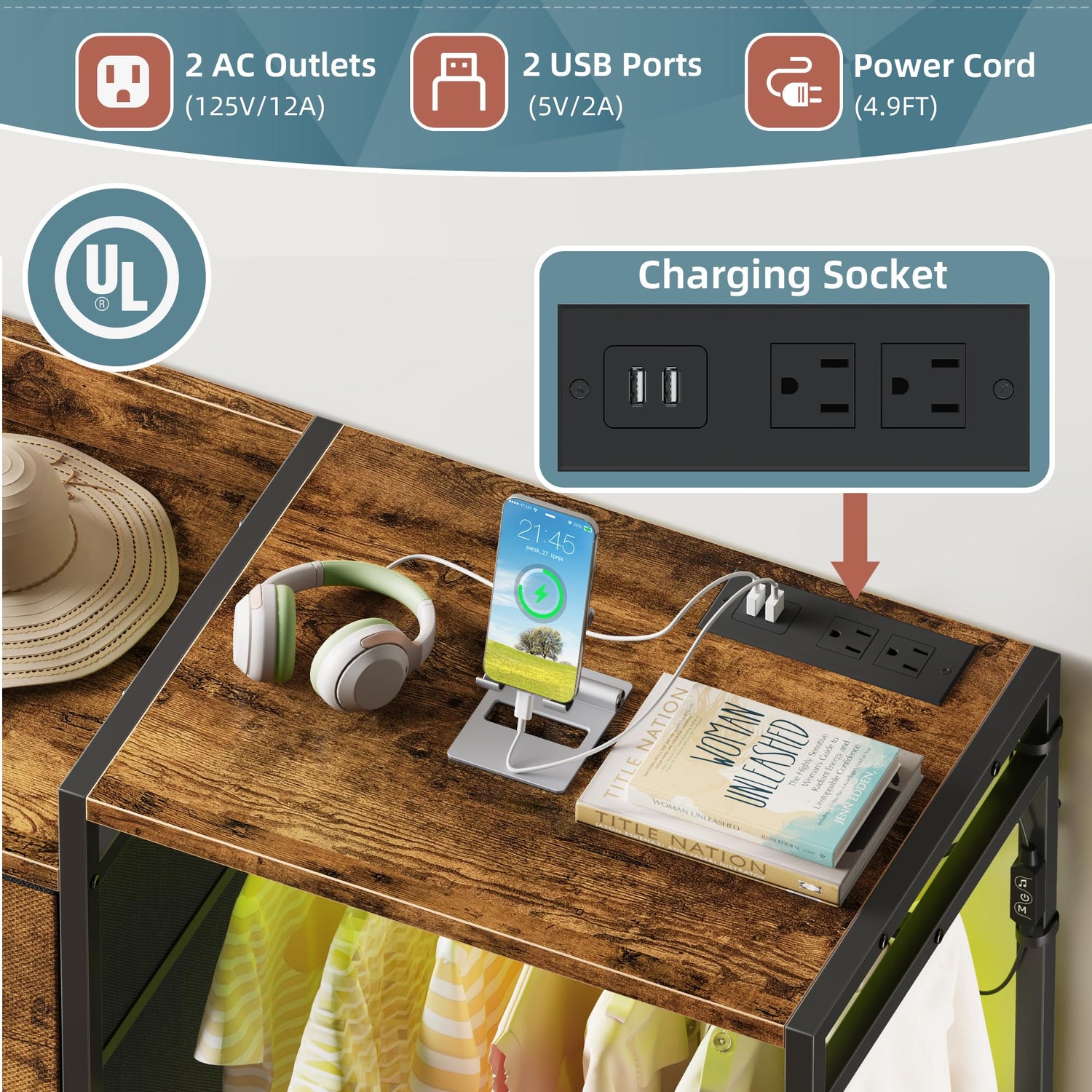 - Charge Devices Without Extra Power Strips: Built-in 2 AC outlets + 2 USB ports let you charge phones, tablets, lamps, or LED lights right on the dresser—no messy cords, no added extension cords