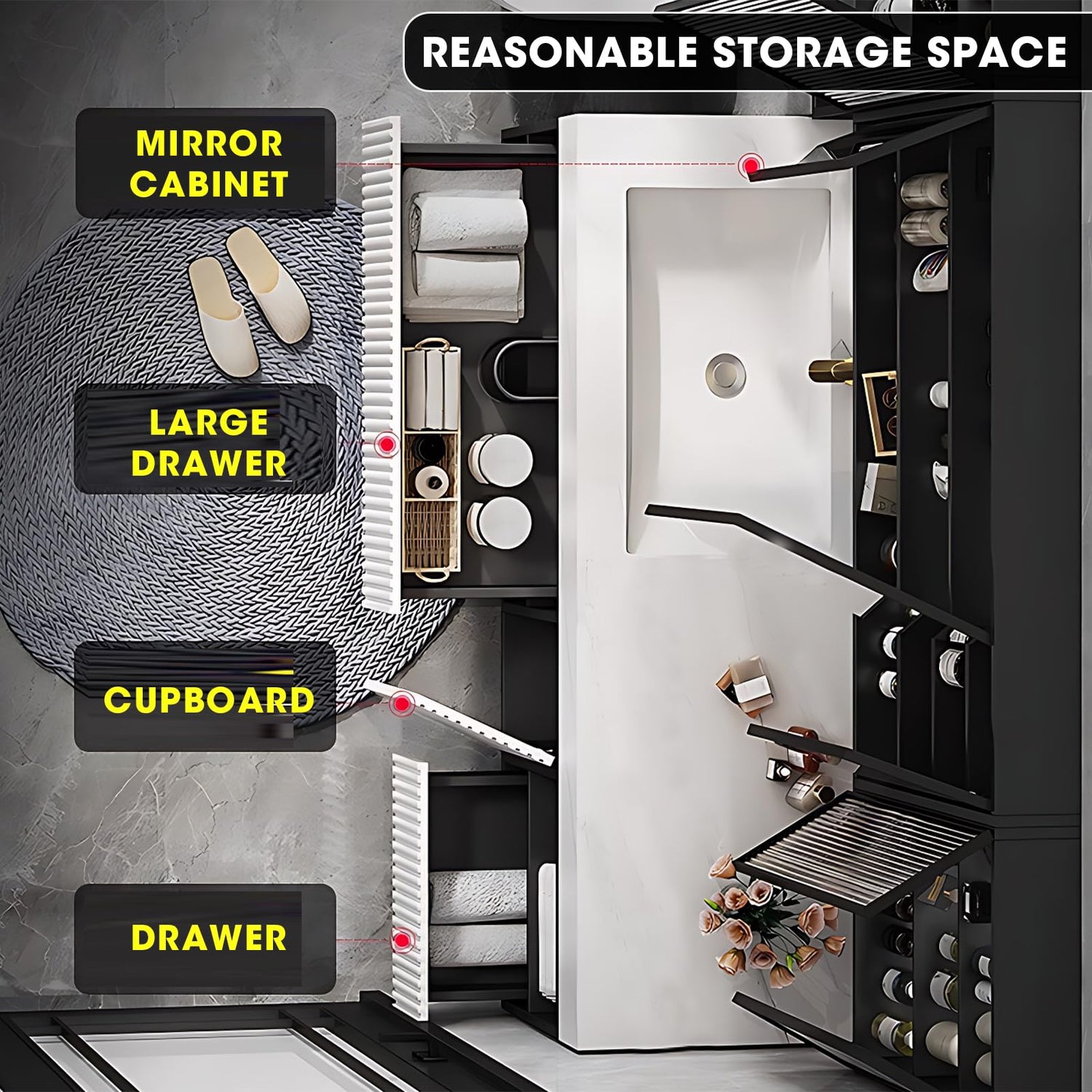 - High Quality Solid WoodE: Our high-end, durable bathroom sets take your bathroom to a new level of sophistication. Made from imported solid wood, this wood option is not only beautiful but also ensures long-lasting functionality that will stand the test of time. The bathroom is equipped with slate countertops with imitation marble texture, which complement the imported solid wood. Slate countertops are scratch-resistant and heat-resistant, ensuring durability and visual appeal.