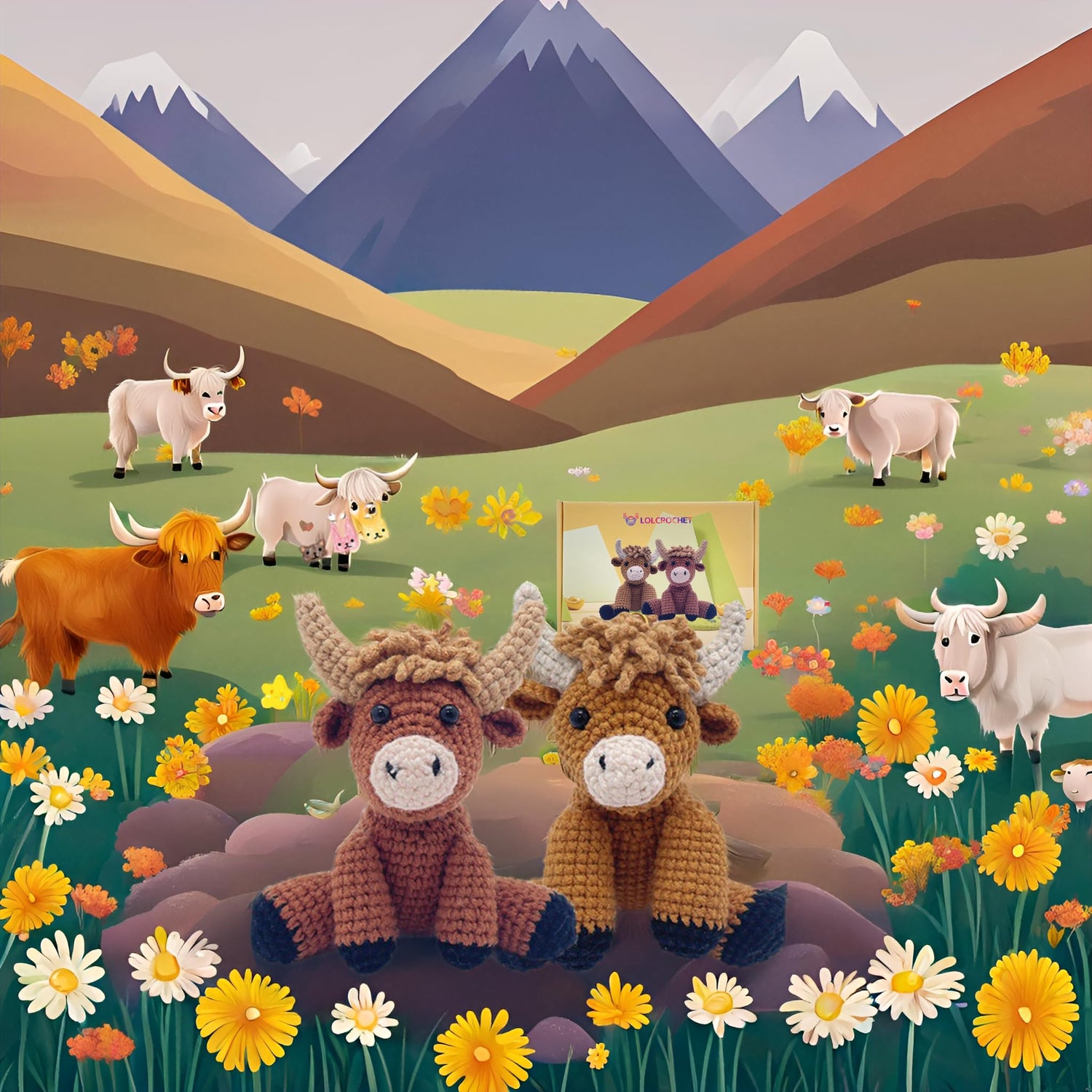 Highland Cow Crochet Kit for Beginners Intermediates - 2 Pcs Animals Craft Crochet Starter Kit with Step-by-Step Video Tutorial, Easy Knitting Set for Adults Kids, Women Learn to Crocheting Gift Idea