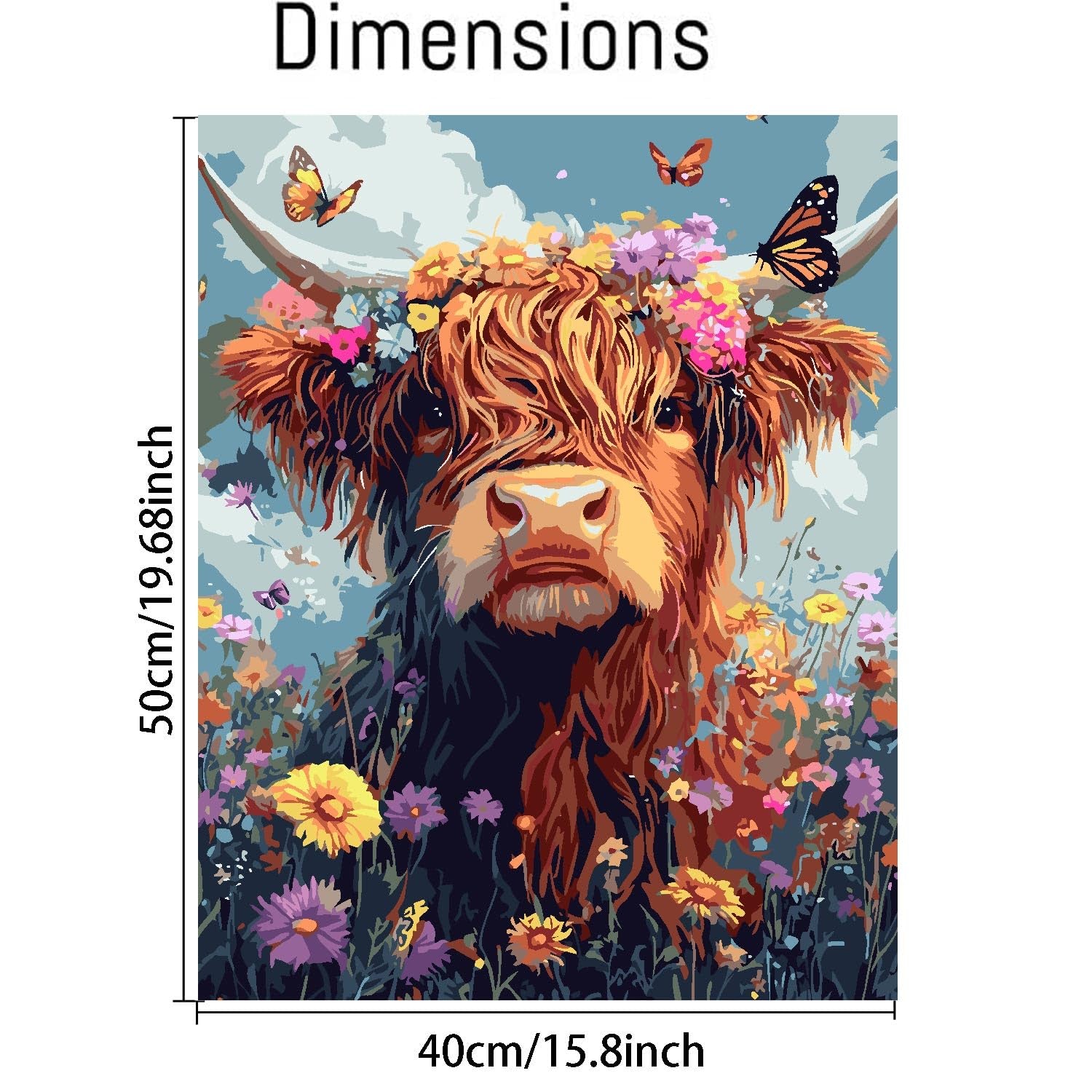 - 【 High Quality 】Our cow with flowers paint by number for adults provide rolled up wrinkle-free linen canvas The numbers and lines are clear.High quality safe acrylic paints,colorful,rich and full,waterproof after drying,can be stored for a long time,In addition, we use high-stretch nylon brushes to make you paint better.We even use vacuumed package on our paints to make sure every drop of the color is ready to apply.bers corresponding to pigments.