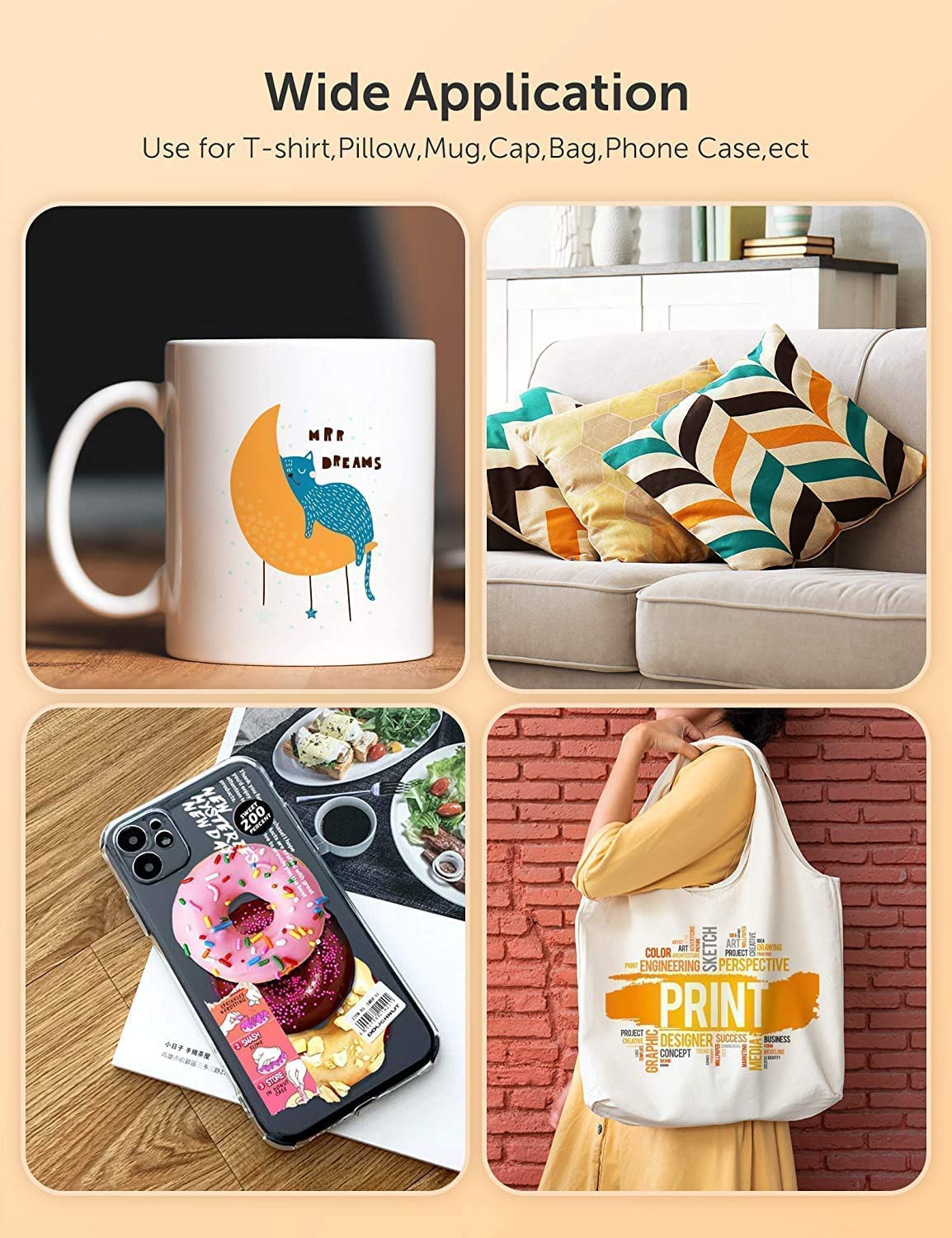 - [Great For DIY And On Demand Printing] The sublimation ink is ideal for mugs, T-shirts, cloth, pillowcases, shoes, caps, ceramics, boxes, bags, quilts, cross-stitched items, decorative clothes, flags, banners, etc. Bring your creations to life printing for every occasion, especially great as gifts for friends family, and more. (Note: Sublimation ink can only be used in fabrics containing less than 30% cotton.)