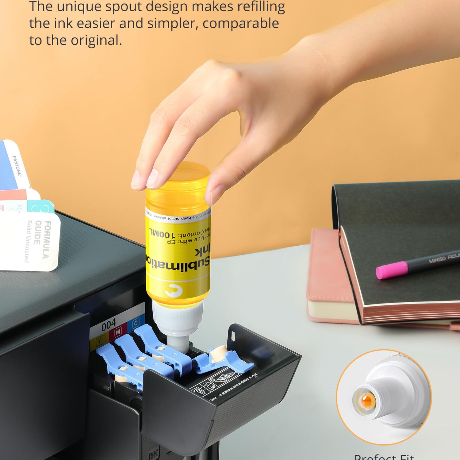 Hiipoo 580ML Sublimation Ink Refilled Bottlescompatible for ET2400 ET2720 ET2760 ET2750 ET4800 ET-2800 ET-2803 ET-2850 Inkjet Printers Heat Press Transfer on Mugs T-Shirts