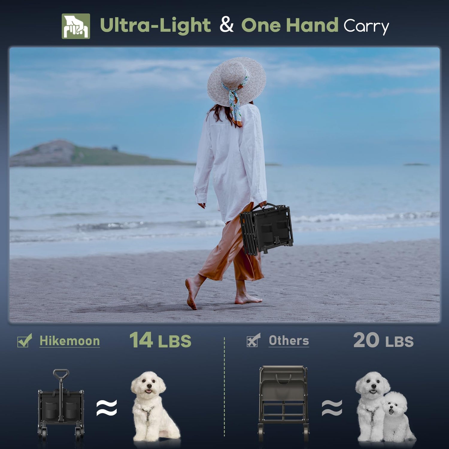 - ใ๐๐" ๐๐ฑ๐ญ๐ซ๐ ๐๐จ๐ง๐ ๐๐ข๐ ๐ก๐ญ๐ฐ๐๐ข๐ ๐ก๐ญ ๐๐๐ ๐จ๐ง ๐ฐ๐ข๐ญ๐ก ๐๐๐๐ ๐๐๐ฉ๐๐๐ข๐ญ๐ฒใ: Featuring a patented design, this wagon is 50% longer than standard wagons. Its spacious interior easily accommodates long items like folded tents. Despite its large capacity, it weighs only 14 lbs, making it 40% lighter than other wagons! You can carry this portable wagon effortlessly.
