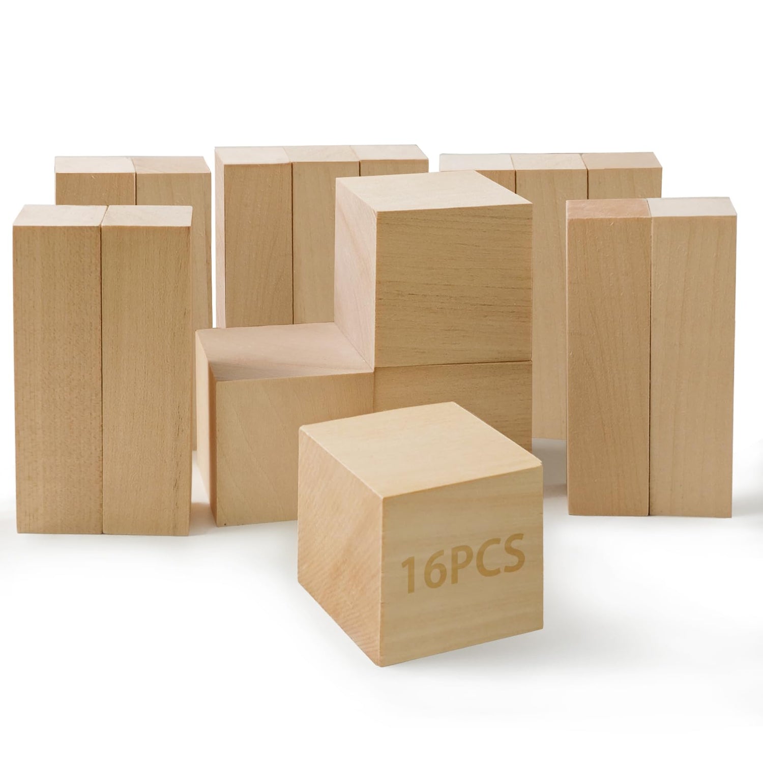 - 16-Pack of Wood Carving Blocks: This set includes 12pcs blocks (2''x2''x2''), 6pcs blocks (1''x1''x4''), giving you the flexibility to create a range of projects, including figurines, ornaments, and miniature models.