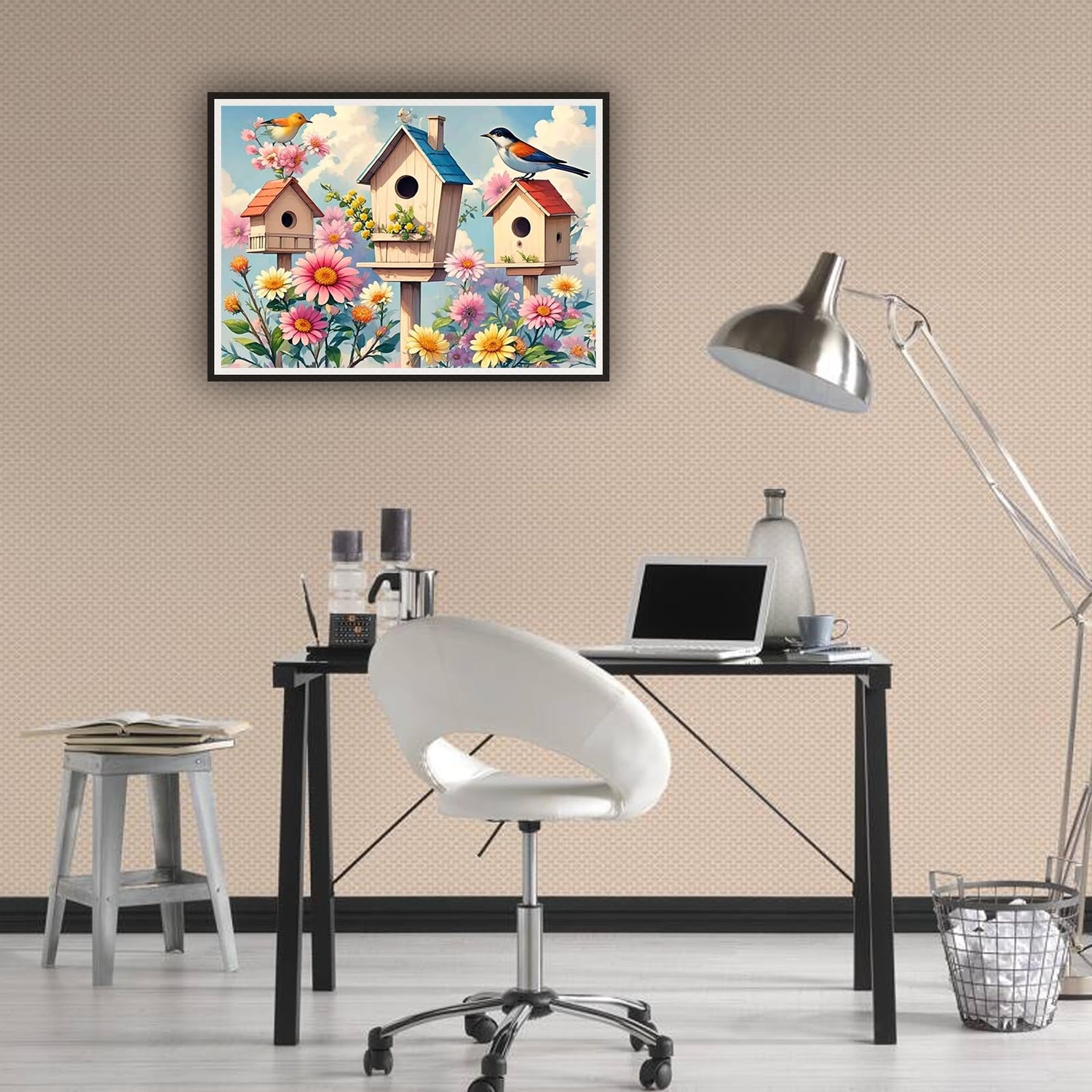hill froeistung 5D Colorful Bird Diamond Art Painting Kits for Adults,Flower Diamond Art, DIY Full Drill Birdhouse Diamond Art Painting(16X12 inch)