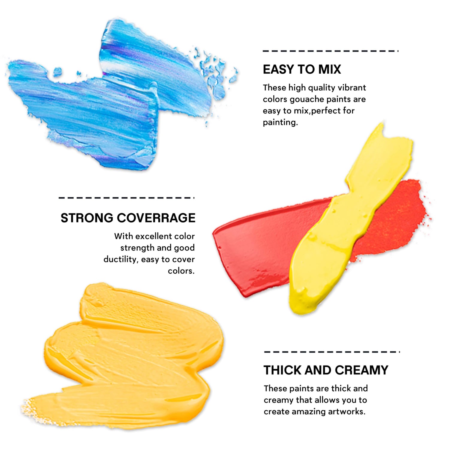 - 💚ULTIMATE PERFORMANCE FOR ANY ARTIST – Highest PREMIUM Quality Raw Materials are specially selected to manufacture our PREMIUM quality Gouache paint set that outperform the many Alternatives in the market.