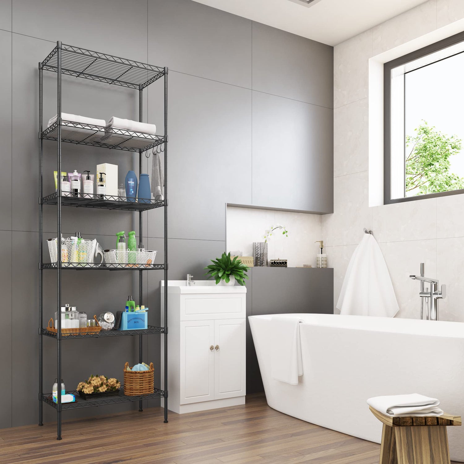 Himimi 6-Tier Wire Shelving Unit, Free Standing Shelf, Metal Storage Shelves, Heavy Duty Organizer Rack for Garage, Kitchen, Living Room, Bathroom, 21.26L x 11.42W x 62.99H, Black