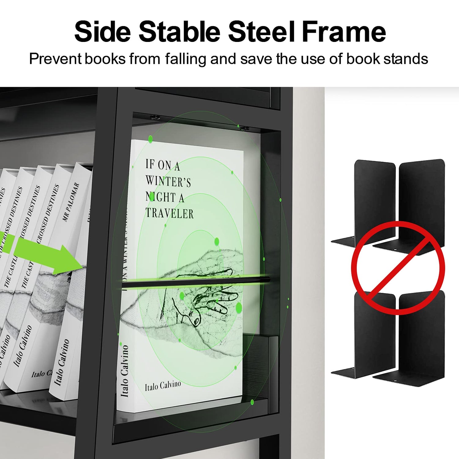 Himimi Black Ladder Bookshelf, 5 Shelf Bookcase Industrial Bookshelf Wood and Metal Bookshelves, Plant Flower Stand Rack Book Storage Shelves for Living Room, Bedroom, Home Office