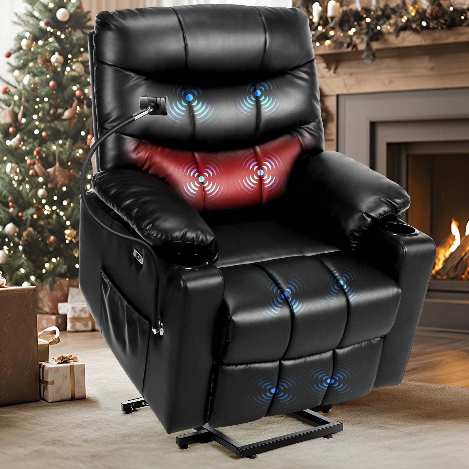 Himimi Power Lift Recliner Chair for Elderly, Adjustable Electric Recliner with 8-Point Vibration Massage, Lumbar Heating, Remote Control, Cup Holders, USB & Type-C Ports (Black)