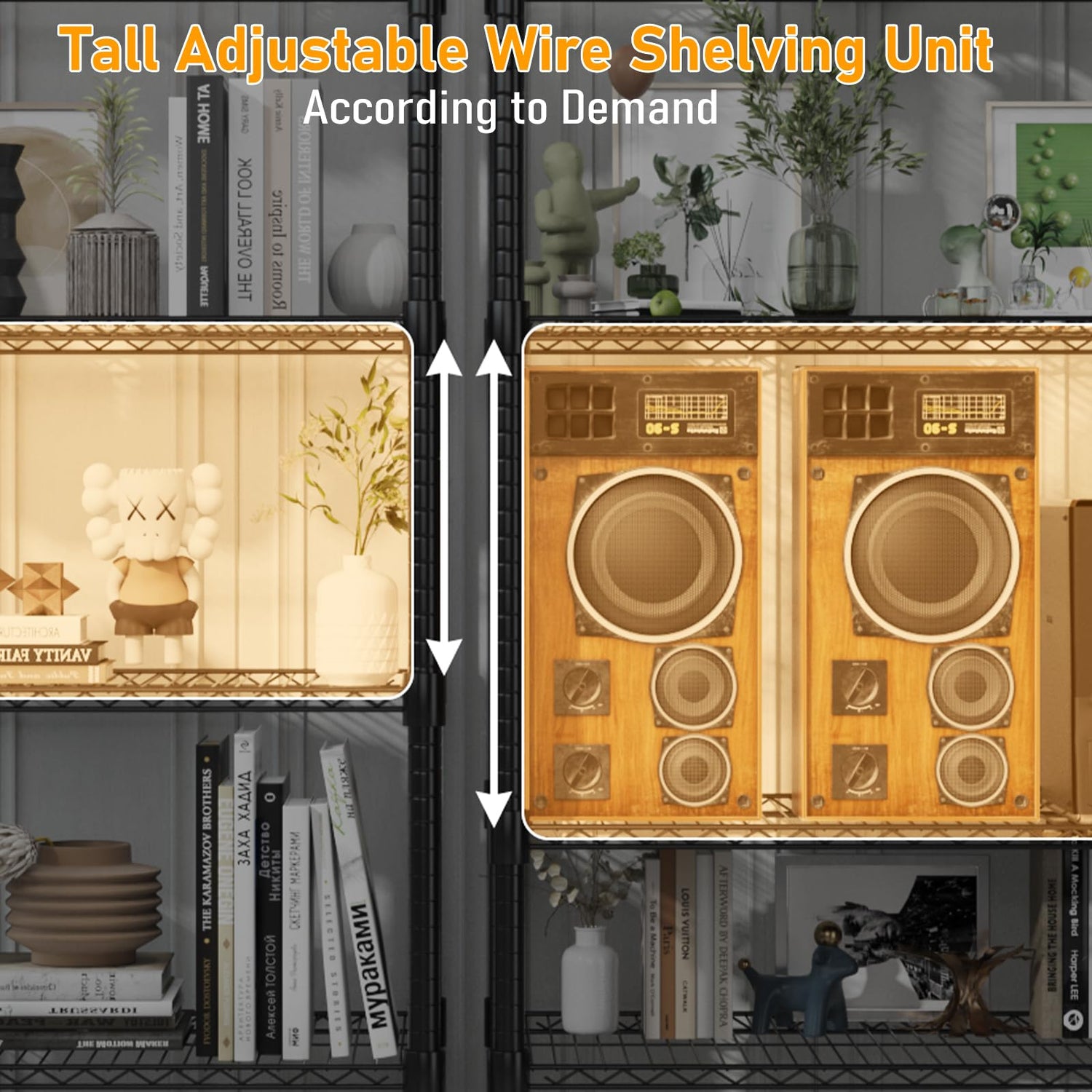 - 【ADJUSTABLE SHELF】Each layer of the wire shelf can be adjusted to match the height of your items, optimizing your storage space. Additionally, you can join two storage racks to form a wider unit, providing extra width to meet your needs.No matter your requirements, you can assemble a shelf configuration that fits just right