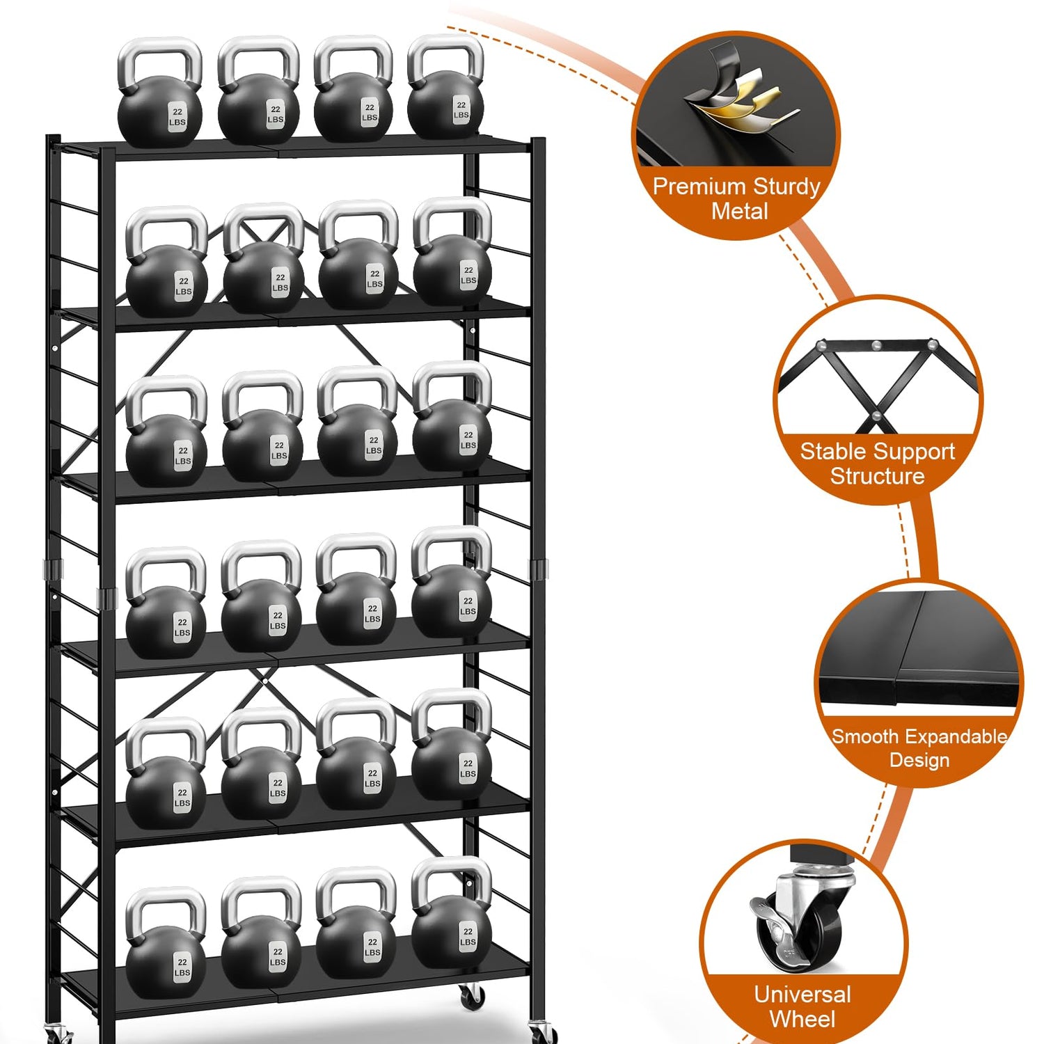 - 【Sturdy & Versatile Shelf】Constructed with premium steel iron, durable and sturdy for long time use. Hold up to 132 lbs per shelf for a total load weight of 792 lbs on wheels. Allowing to be used in garage, ktchen, balcony, basement, pantry room, ect.