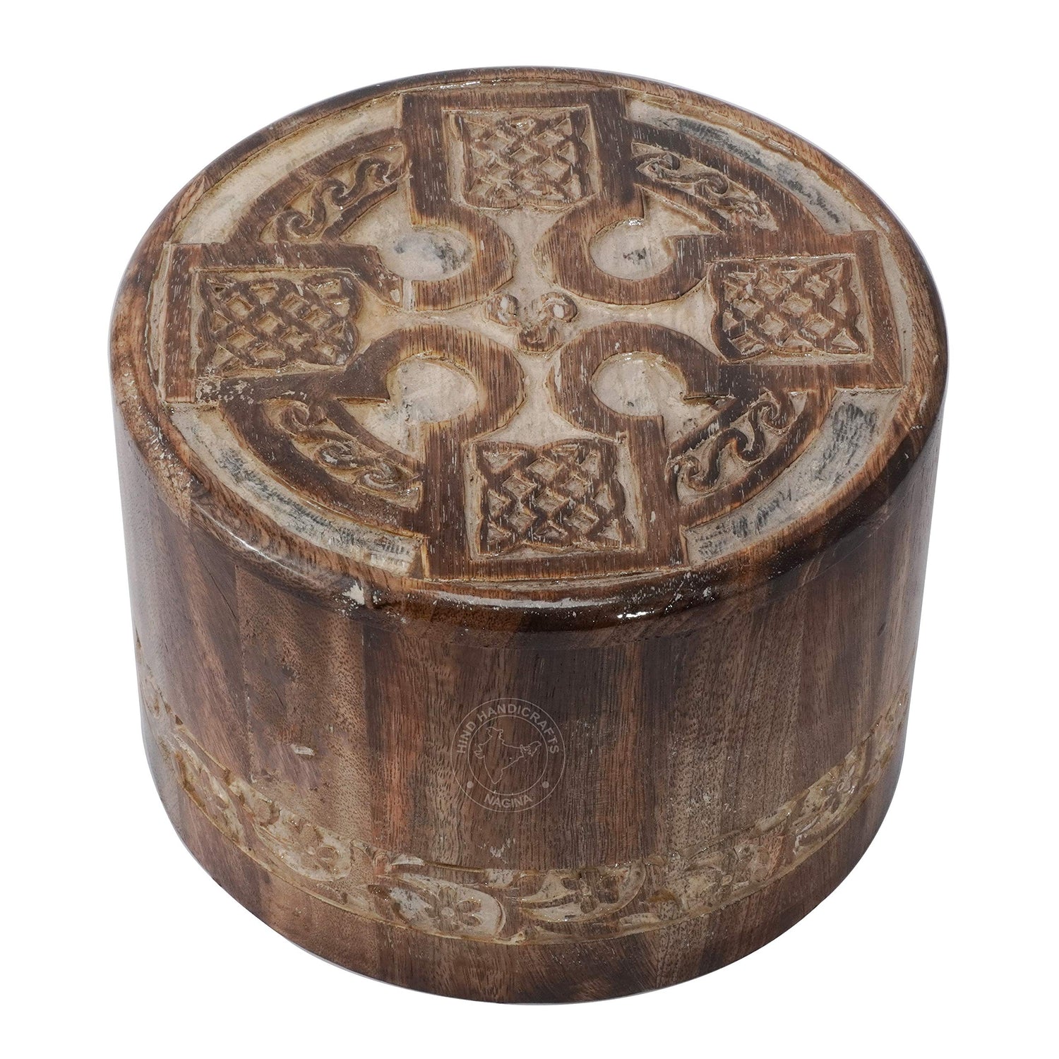 HIND HANDICRAFTS Round Wooden Engraved Urns for Human Ashes Adult - Wooden Box Rosewood Cremation Urns for Ashes - Burial Urns - Funeral Urns Large