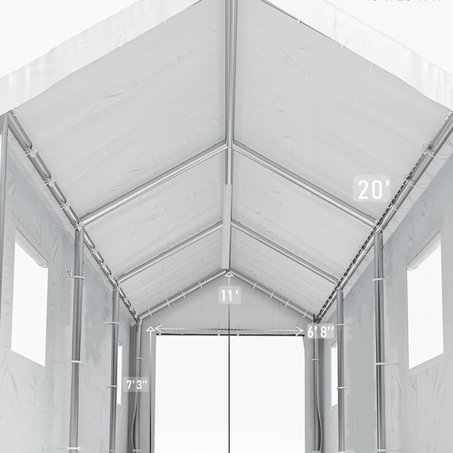 - 【Generous Dimensions for Versatile Applications】: Measuring 10 feet in width, 20 feet in length, and 11 feet in height, this 10x20 carport heavy duty provides ample room for your car, truck, or recreational vehicle. Its spacious design makes it perfect for a multitude of uses, including storage, outdoor gatherings, or as a workshop.