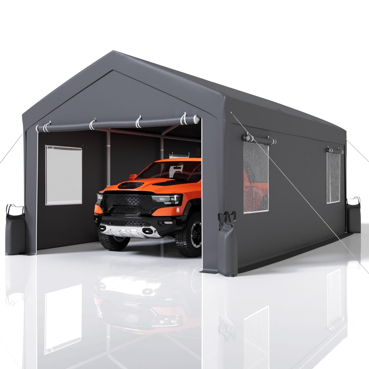 Hipicute 20'x10'x11' Heavy-Duty Portable Garage with Canopy, Front and Back Doors, Roll-Up Windows, Carport Shelter Reinforced Structure for Cars, Trucks, Boats, and Parties - Gray