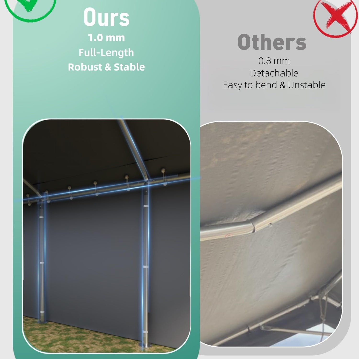 - 【Easy to Set Up and Versatile 】- The tool-free frame allows for super quick and easy setup. It includes step-by-step instructions. Typically, two or more adults can install this portable car tent within half an hour. You can use this 20x10 carport for hosting parties, fairs, and birthday celebrations, or for storing boats, trucks, lawn, and garden equipment.