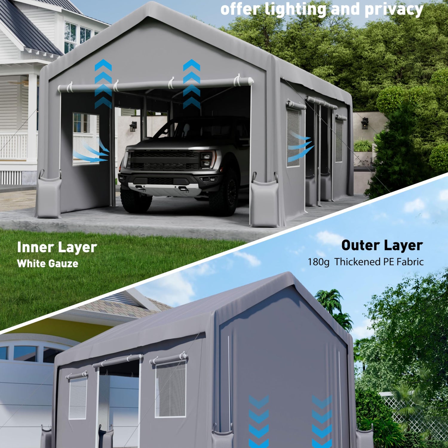 Hipicute Carport Zipper Door Replacement for Portable Garage - Compatible with 13' x 20' and 13' x 25' Frames - Gray (Zipper Doors Only, No Frame Included)