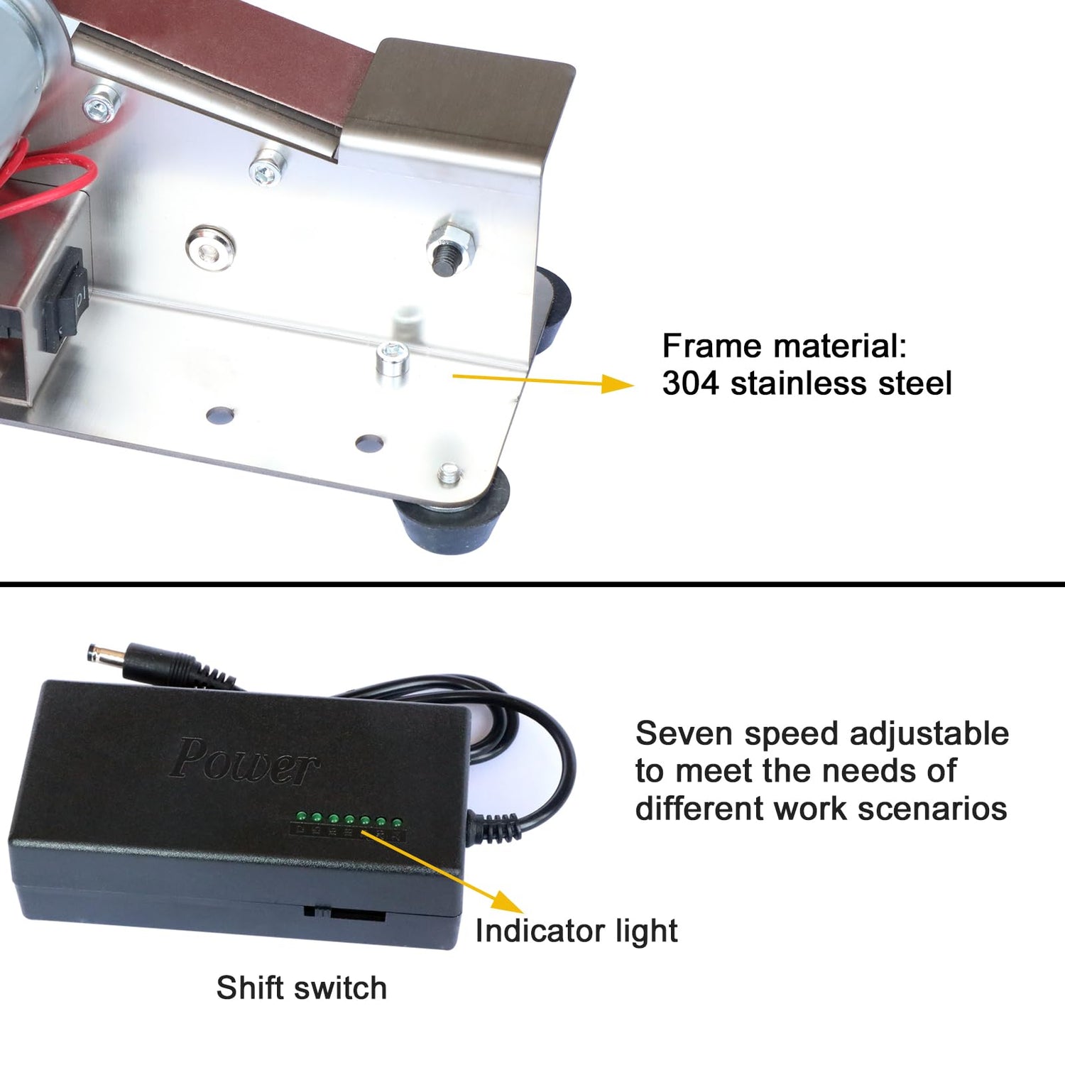 - The mini belt sander bench grinder also equipped with 7 speed adjustment, to meet the needs of different work scenarios.