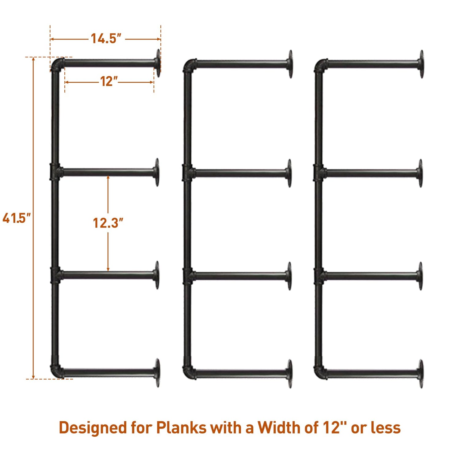 - 【INTRODUCTION】Included are 3 sets of freely-connected, 41.5" tall, 4-tier hardware. With a 12" depth and 12.3" between tiers, it's suited for boards with a width of 12" or less. The span can be adjusted to your needs. Note: Boards are not included.