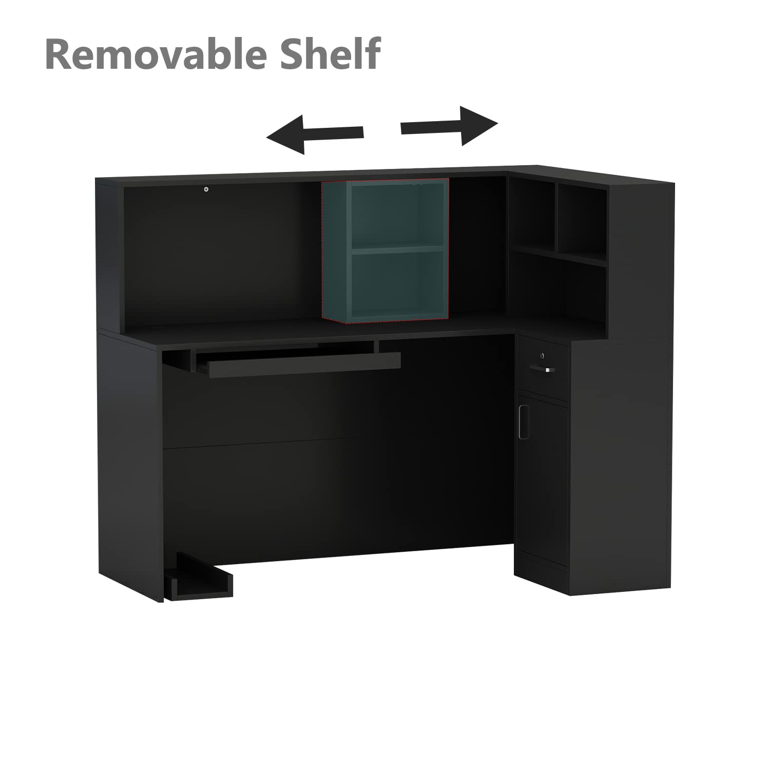 - Ample Storage Space - This recetion desk offers spacious shelves above the tabletop, allows improve your place tidiness. There has an adjustable component to keep your office stuff easy to access. Store your files and belongings in loackable drawers and the cabinet