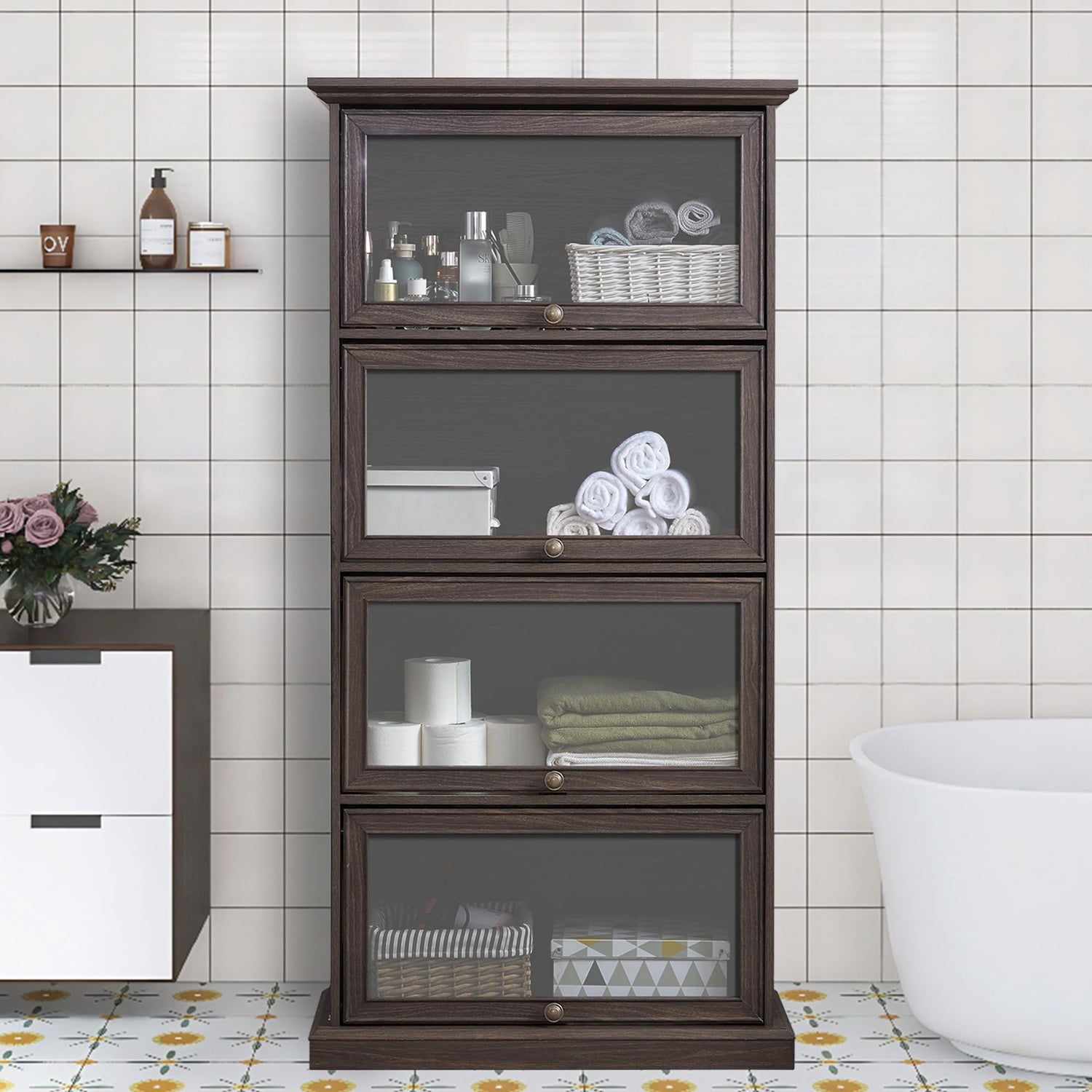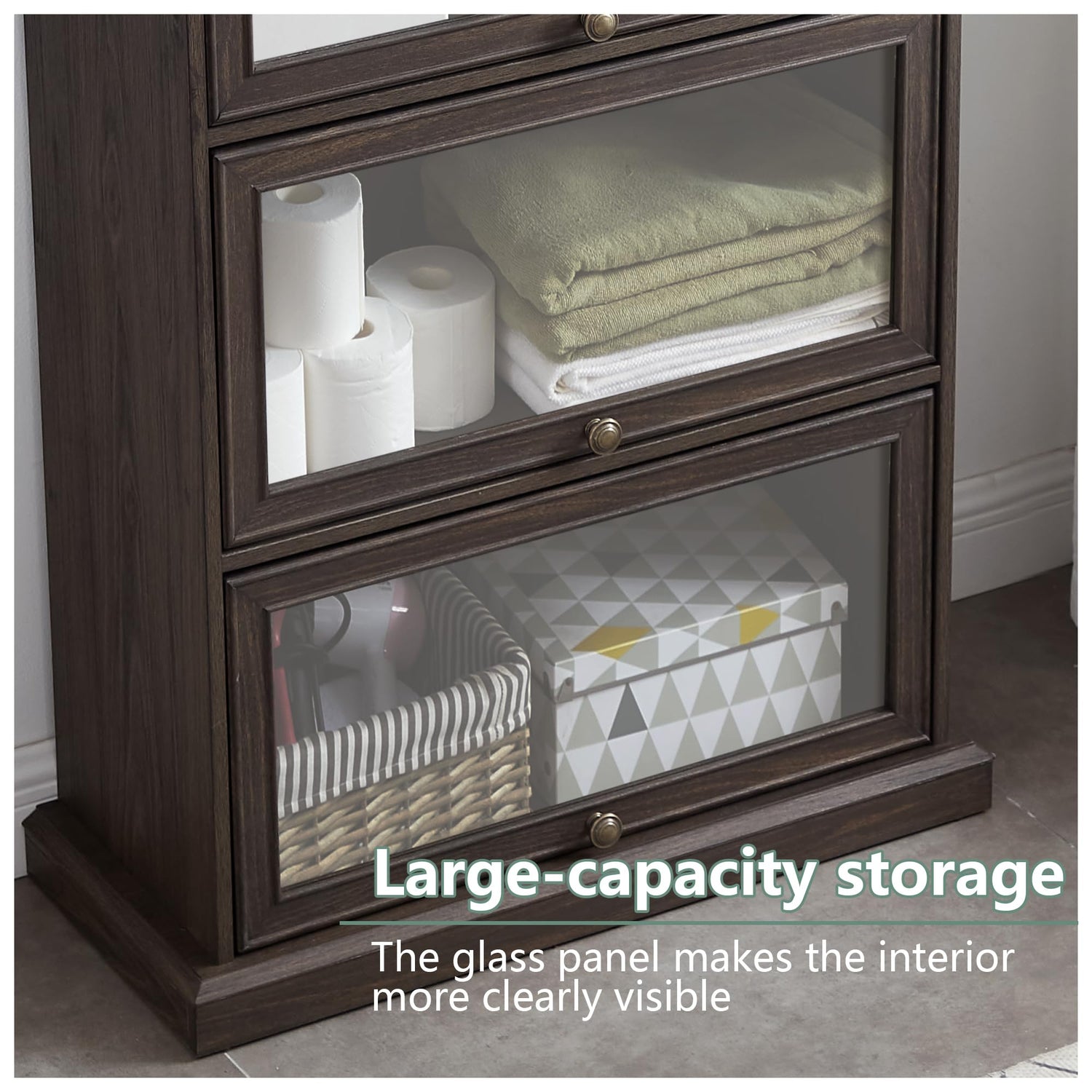 - 【Elegant Flip-Up Design & Premium Visibility】 This brown glass display curio cabinet features a unique flip-up door design with magnetic stops, offering easy access while keeping your items secure. The tempered glass panels provide a clear view of your collectibles, books, or trophies, making it perfect as a barrister bookcase with glass doors or a rustic brown curio cabinet for showcasing treasures.