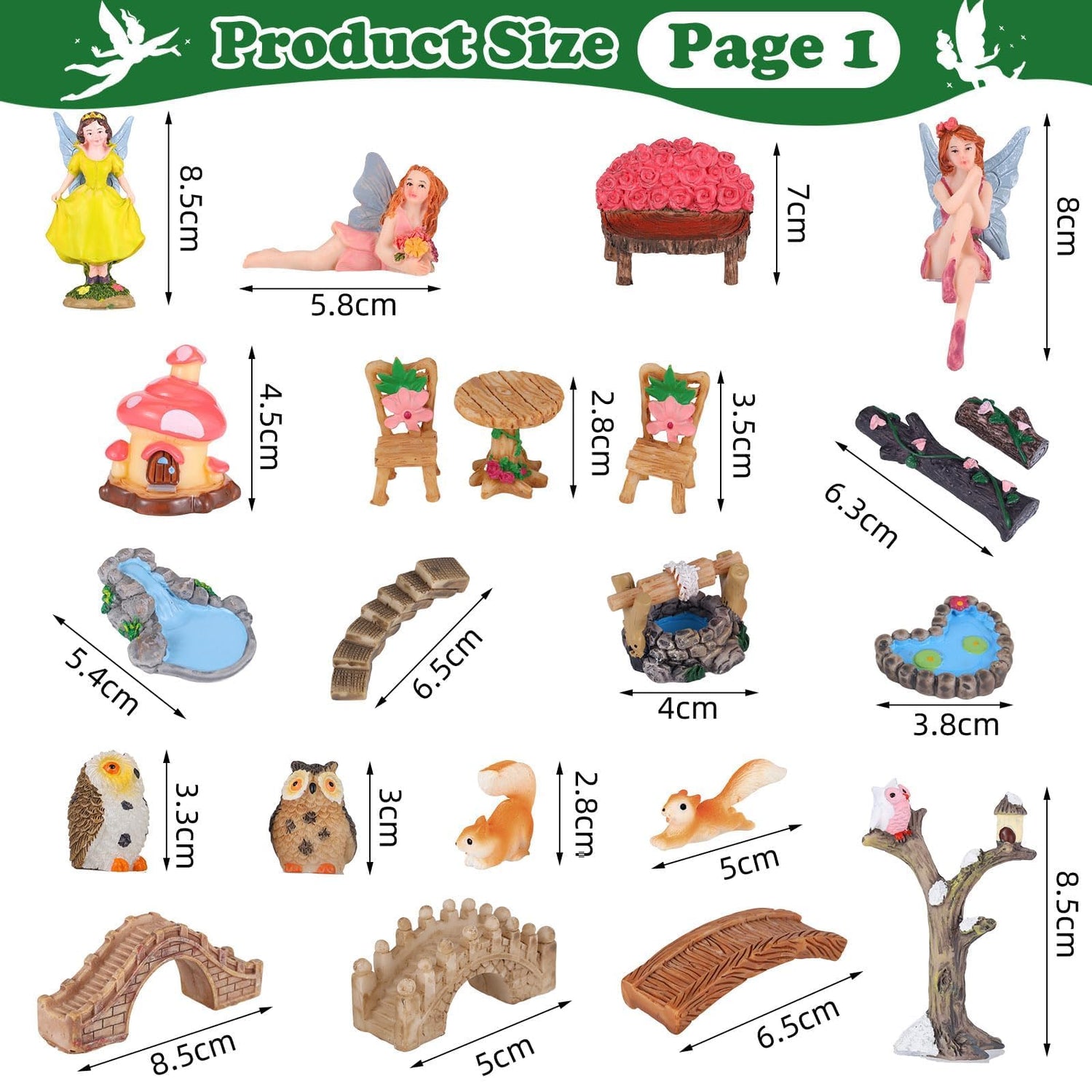 The fairy garden figurines set is ideal for miniature gardens, miniature figurines, micro landscapes, dollhouses, terrarium decor and plant pot decorations; It can also be applied as desk toys, cake decoration, learning tools.
