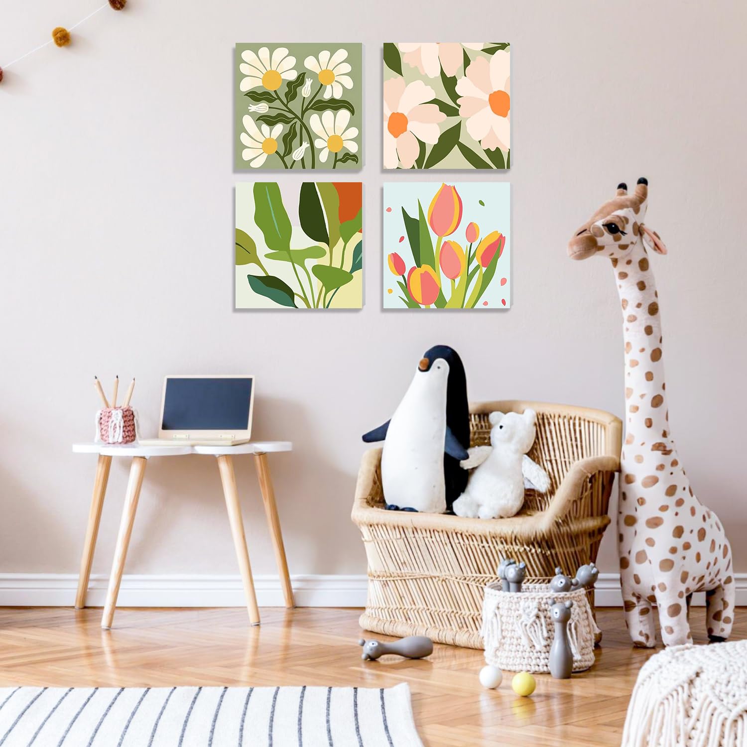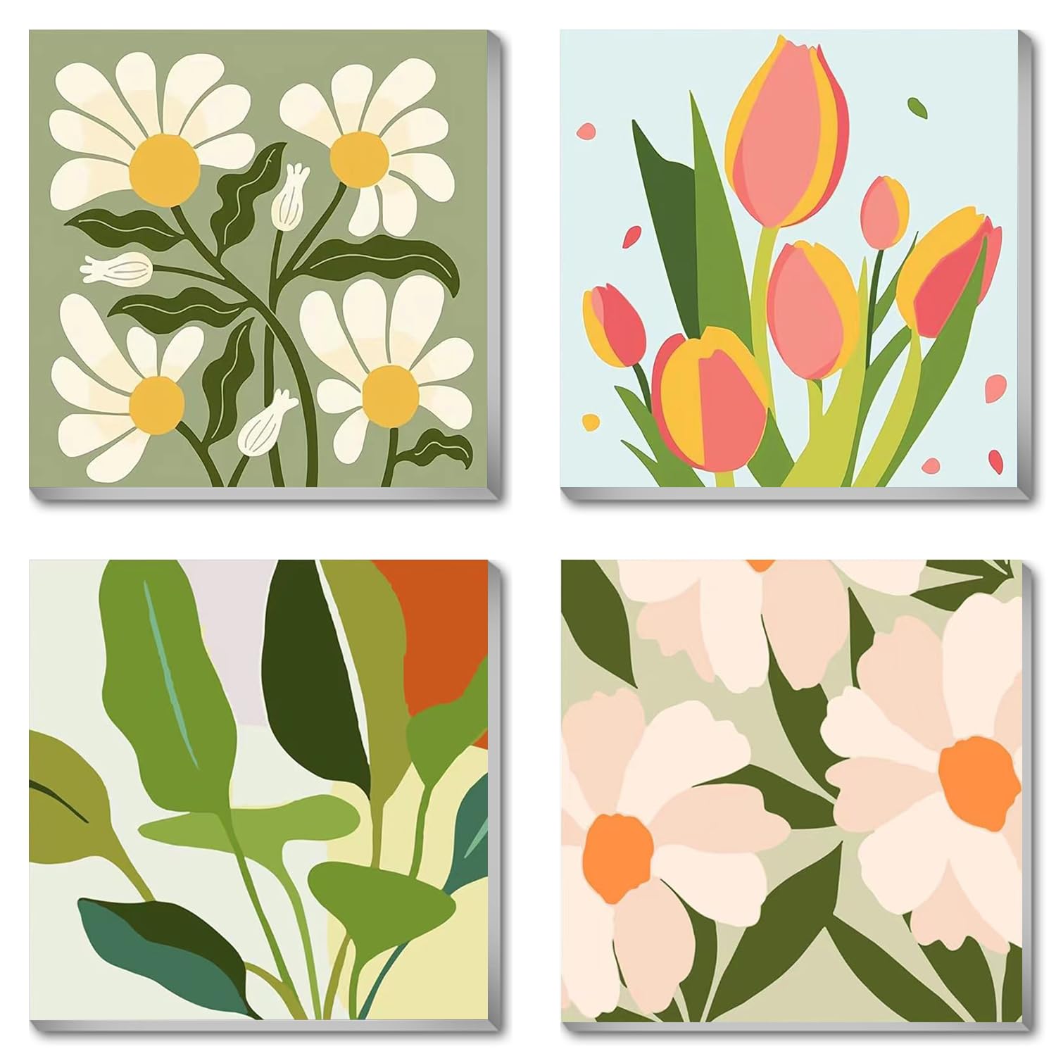 hkejoi 4 Pack Flowers Paint by Numbers Kit for Adults Framed - Small Easy Adult Paint by Numbers Kits, Acrylic Oil Painting Perfect for Home Wall Decor 8X8 Inch