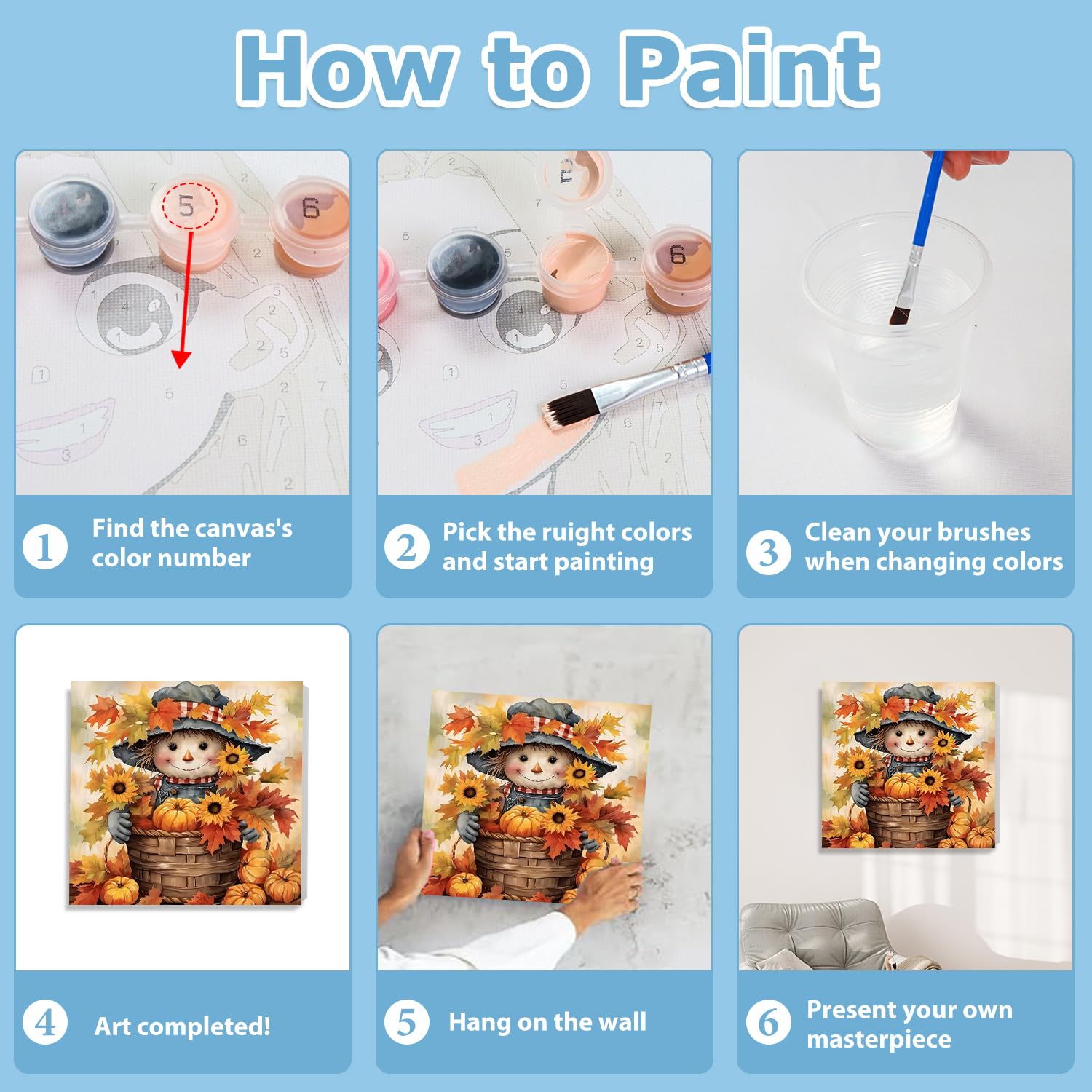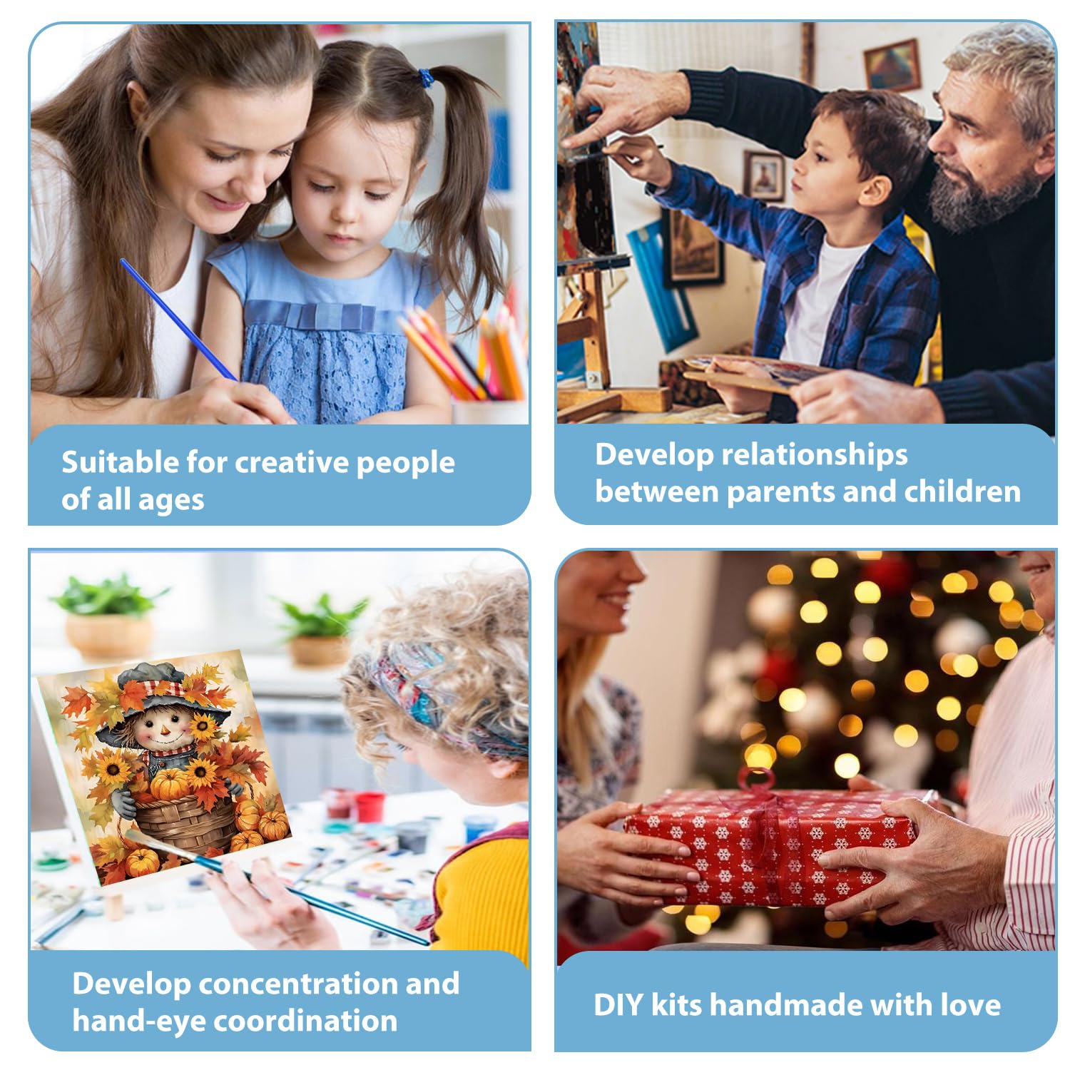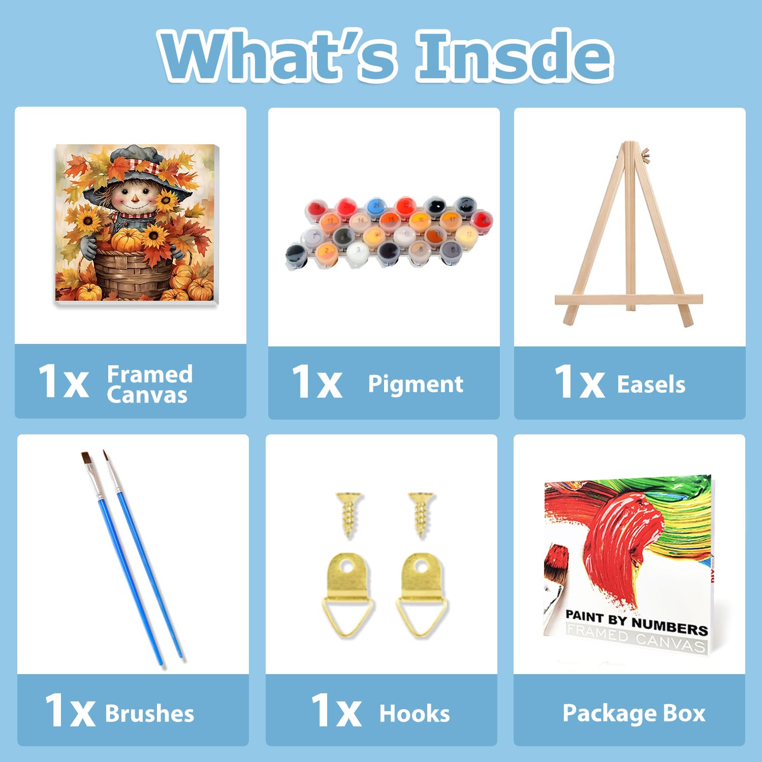 hkejoi Fall Paint by Numbers Kit for Adults Beginner, Fall Paint by Numbers with Frame and Easel, DIY Crafts Painting by Number for Gift Home Wall Decor 9.84x9.84 inch