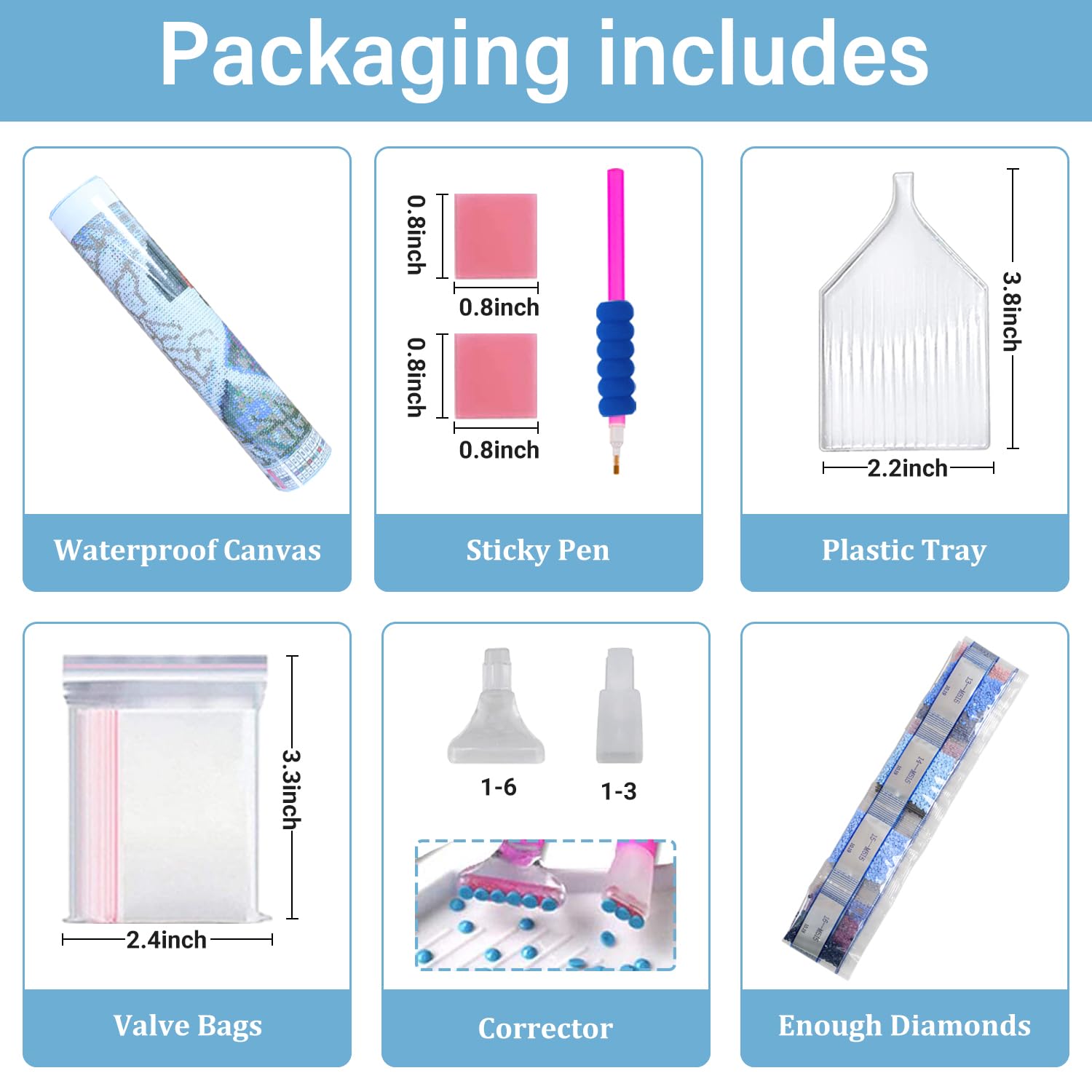 - 【Package Included】1*canvas(12x16inch),1*diamond pen,2*glue,1*new design plastic tray,10*self-sealing bags and enough round diamonds.You get about 30% extra beads in every color.A diamond painting kits let you make stunning diamond art,no artistic skills required.