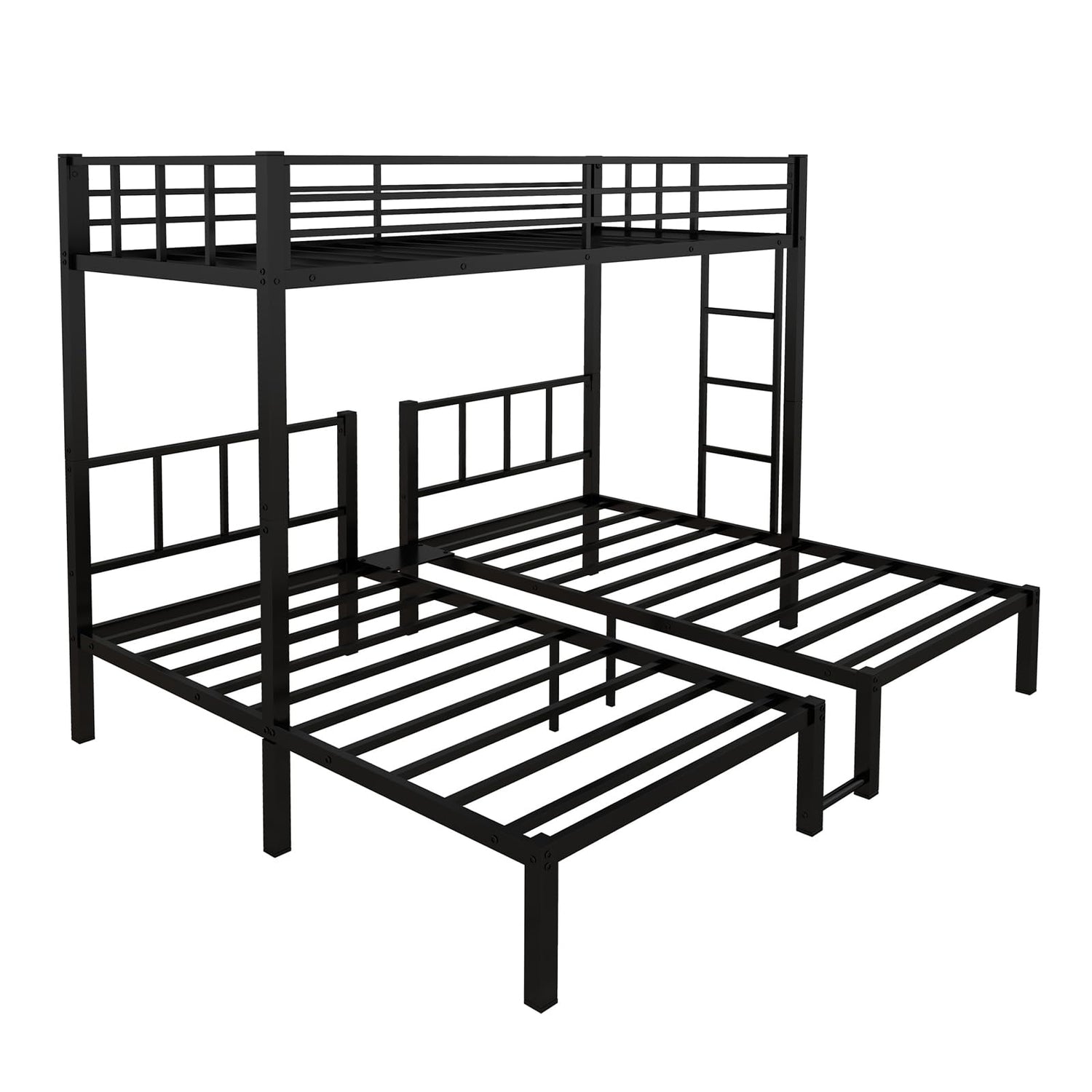 HKOLIE Detachable Triple Bunk Bed, Metal Bunk Bed for 3, with Guardrails, Ladder & Upper Bed Platform, Black, for Kids, Teens, and Adults, No Box Spring Needed