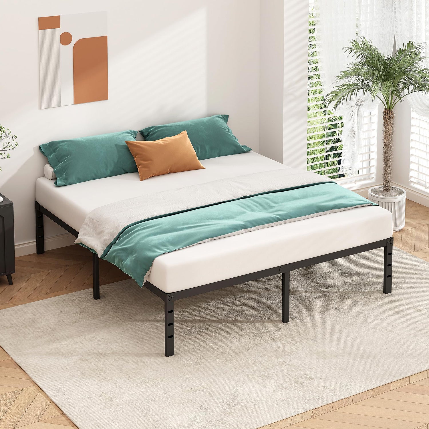 - No Box Spring Required: Simplify your bedroom setup – our bedframe offers stability without the need for a box spring. its slatted platform base provides ample support for various types of mattresses without requiring an additional foundation, making it a cost-effective and convenient option for you.