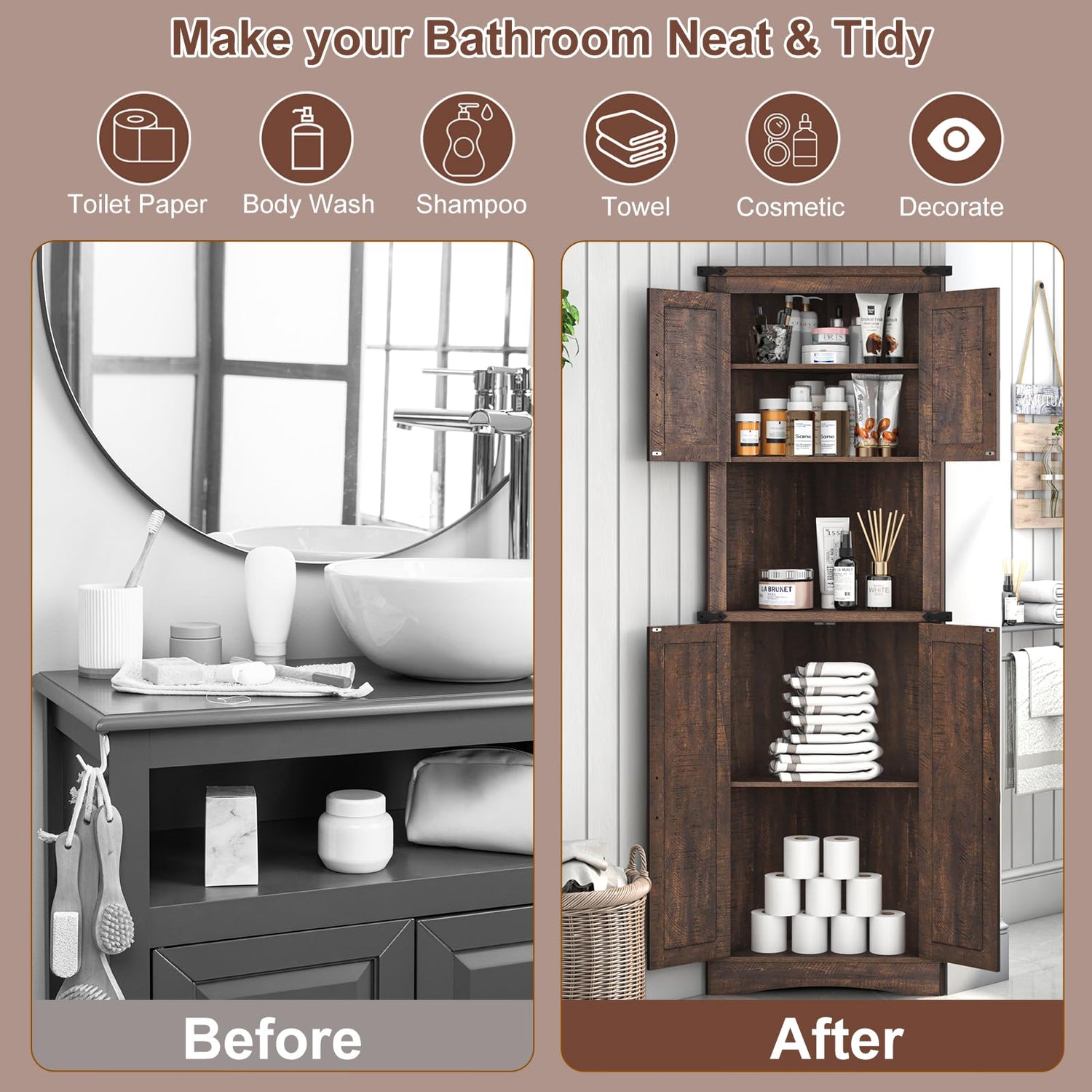 - Easy to Assemble: The tall storage cabinet with doors package includes step by step instructions and all the hardware, and all parts and accessories are labeled. With an easy to follow instructions manual and only taking 30 minutes to assemble you can get a beautiful farmhouse bathroom corner storage cabinet/kitchen cabinet/living room tall corner cabinet!