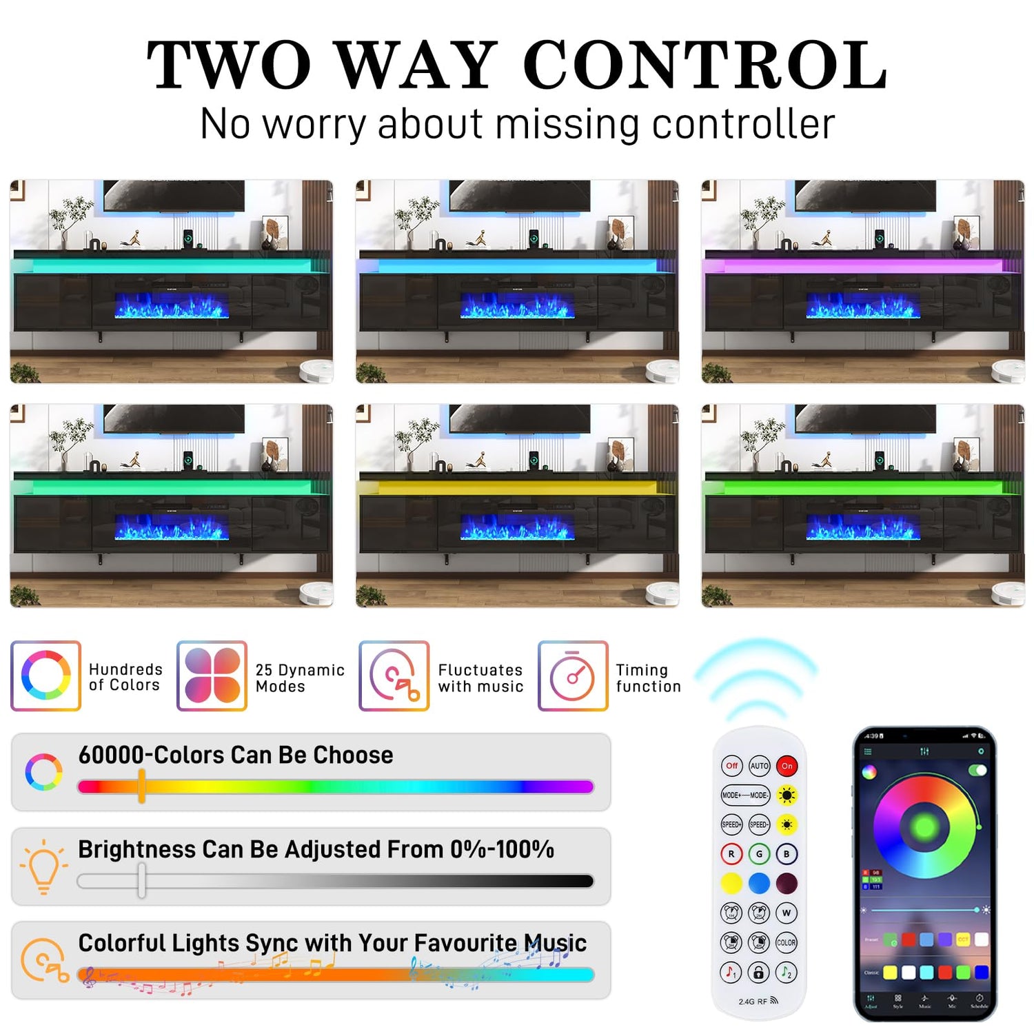 - 70 inch LED TV Stand: Our tv stand comewith 6000 colors LED light, multiple diy mode setting, control by app or RF controller, create a vibrant atmosphere, adding a touch of excitement and entertainment to your viewing experience, you can adjust the lighting to suit any occasion.