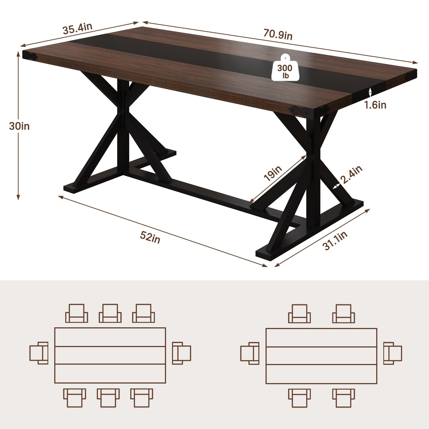 Hlivelood 71 Inch Dining Table for 6 People, Rectangular Kitchen Farmhouse Table W/Thickness Waterproof Wood Tabletop,Long Dining Room Tables W/Wood Strip Base for Kitchen Living Room(Brown&Black)