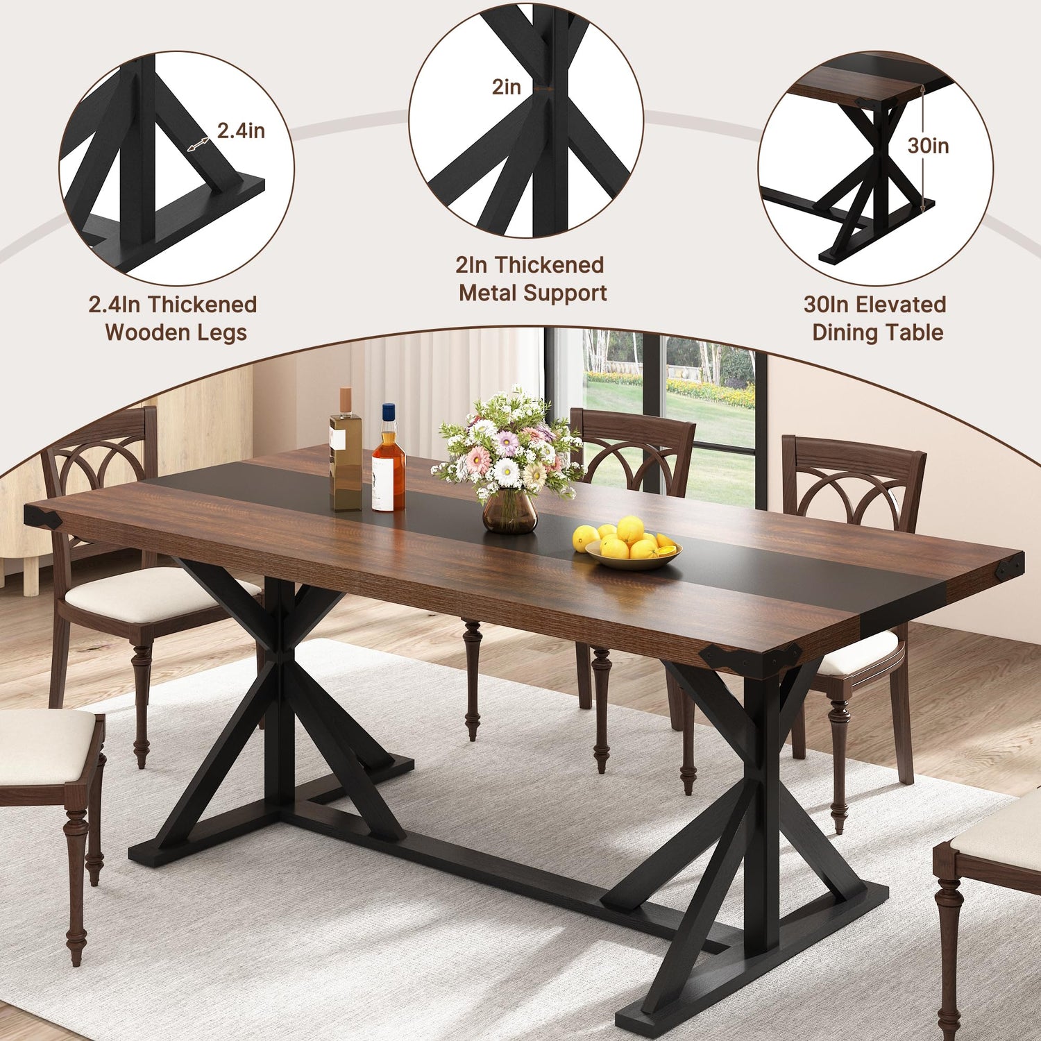 - Sturdy Structure: The legs of this farmhouse dining table are crafted in a robust "X" and "K" shape. With thick 60x25mm wooden legs combined with a 50x50mm metal support column in the center, this dining table ensures excellent stability and load-bearing strength, supporting up to 330 pounds. The adjustable feet at the bottom ensure proper use on uneven floors.