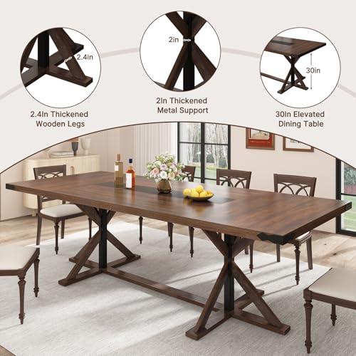 Hlivelood 94" Large Dining Table for 10 People, Rectangular Kitchen Farmhouse Table W/Thickness Waterproof Wood Tabletop,Long Dining Room Tables W/Wood Strip Base for Kitchen Living Room(238CM Brown)