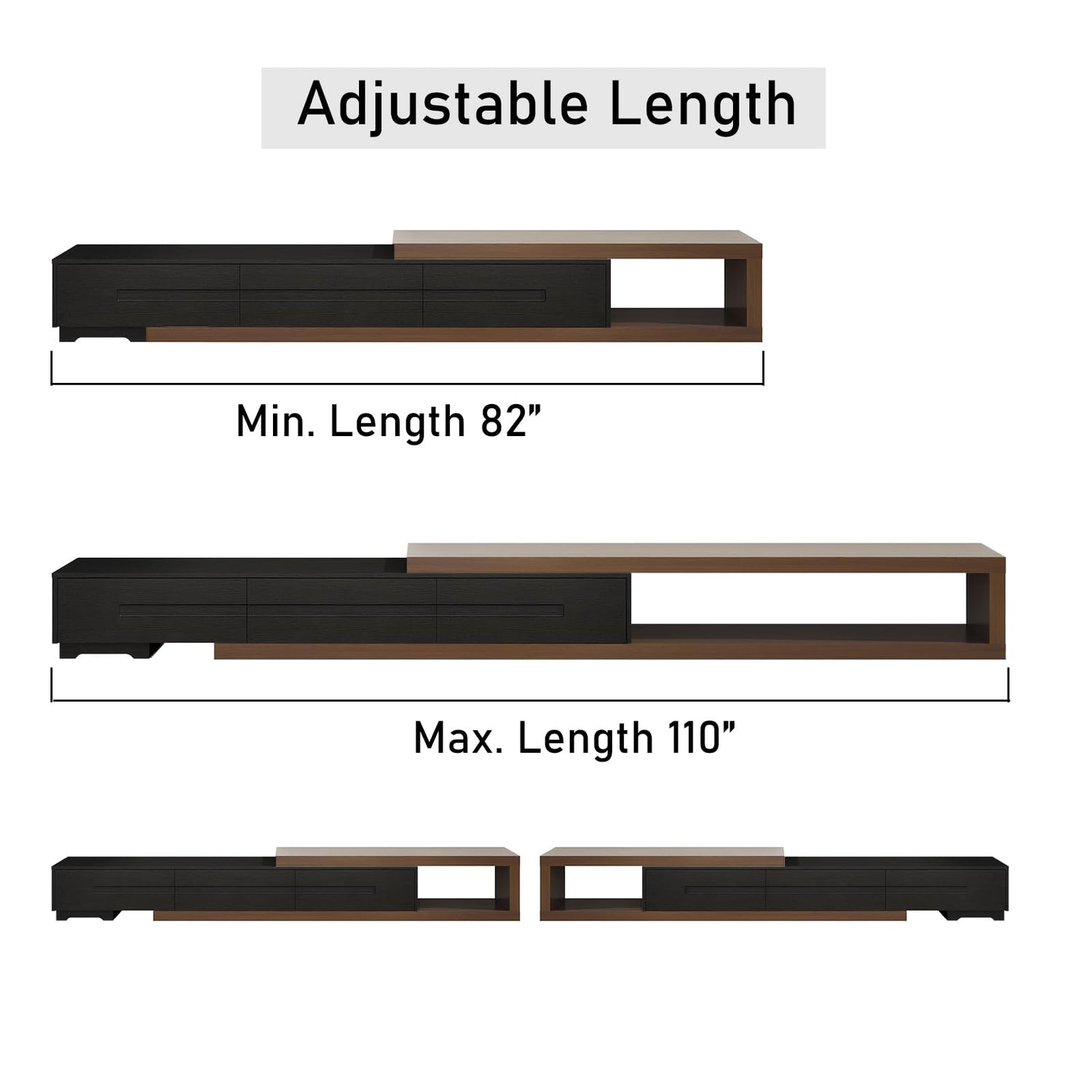 Hlivelood Extendable TV Stand, Modern Entertainment Center for Up to 120 Inch TV, Wood Reversible TV Media Console with 3 Drawers for Living Room Bedroom, 82-110''(Black& Walnut)