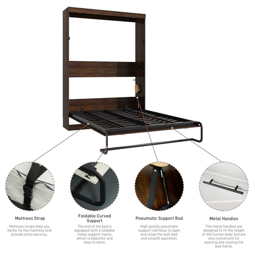 - Premium Materials and No Box Springs Needed: Our cabinet beds are made of industrial-grade laminated MDF and plywood, and the iron bed frame can support up to 1000 lbs. The wall bed is equipped with a supporting wooden board, which you can open and place the mattress directly on it, No Box Spring Needed. The Murphy bed can accommodate most standard full-size mattresses (8-12 inches thick and 59-99 lbs, NOT INCLUDING the mattress!)