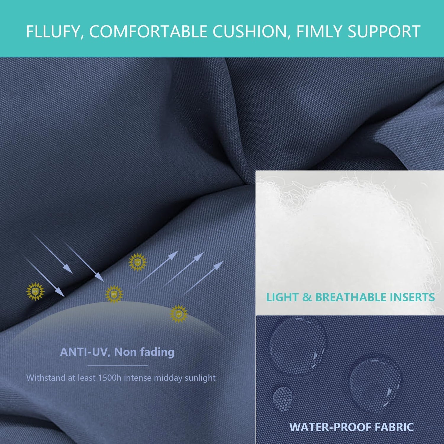 - EXCELLENT FABRIC, COZY CUSHIONS- Distinguished from inferior polyester fabrics, our outdoor chair cushions are made of solution-dyed fabrics, finely finished in vibrant colors, making a wonderful unique addition to your space. Topped with soft padded cushions, lumbar and headrest pillows, which features a high quality PP cotton fiberfill cores to ensure a perfect fit from head to toe.