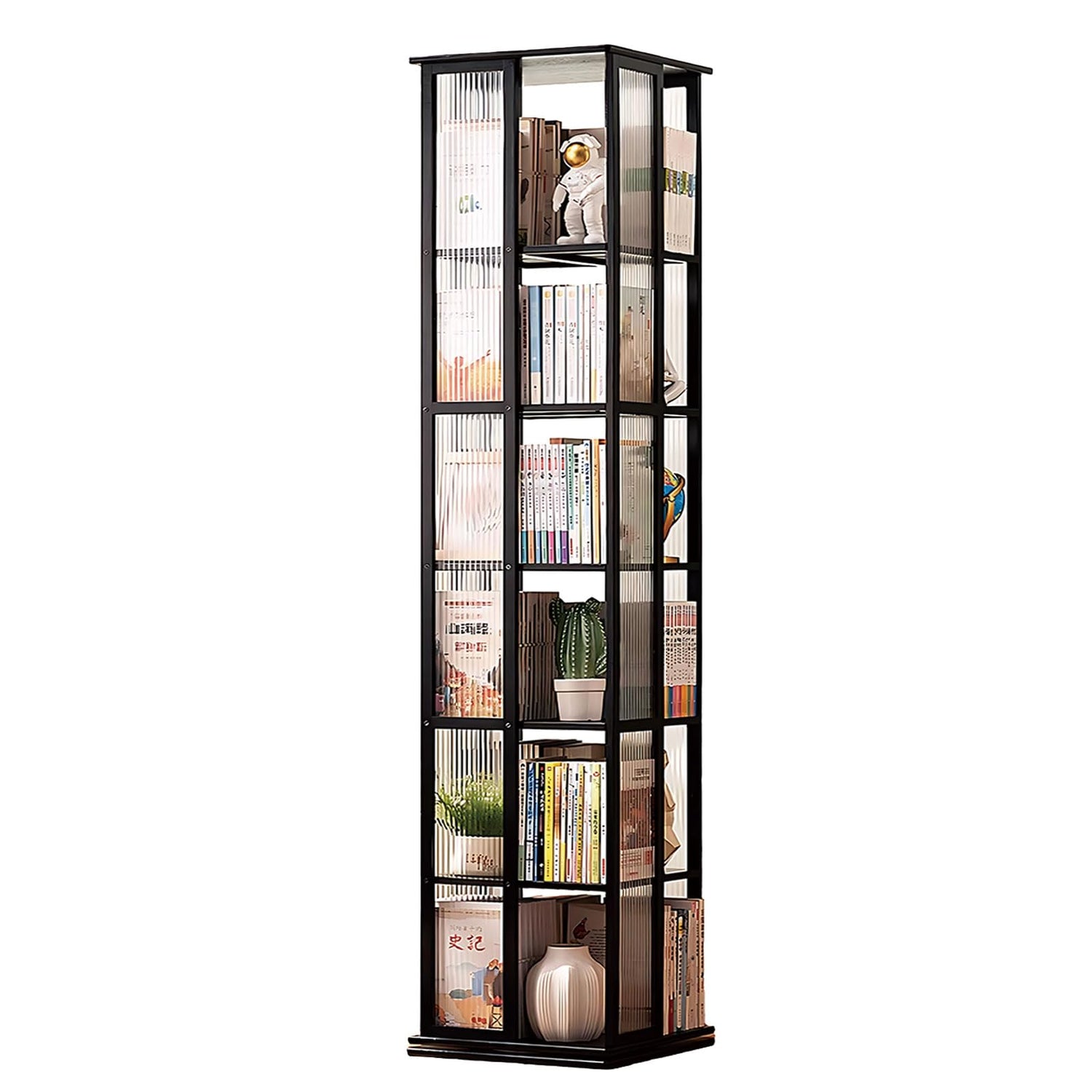- 【Elegant Design Style】 The black bamboo board can be well fit into the home decoration. Whether in the living room, bedroom, study room or office, this rotating bookshelf tower can be used to store or display your items. Not only is it waterproof, it's also scratch-resistant.