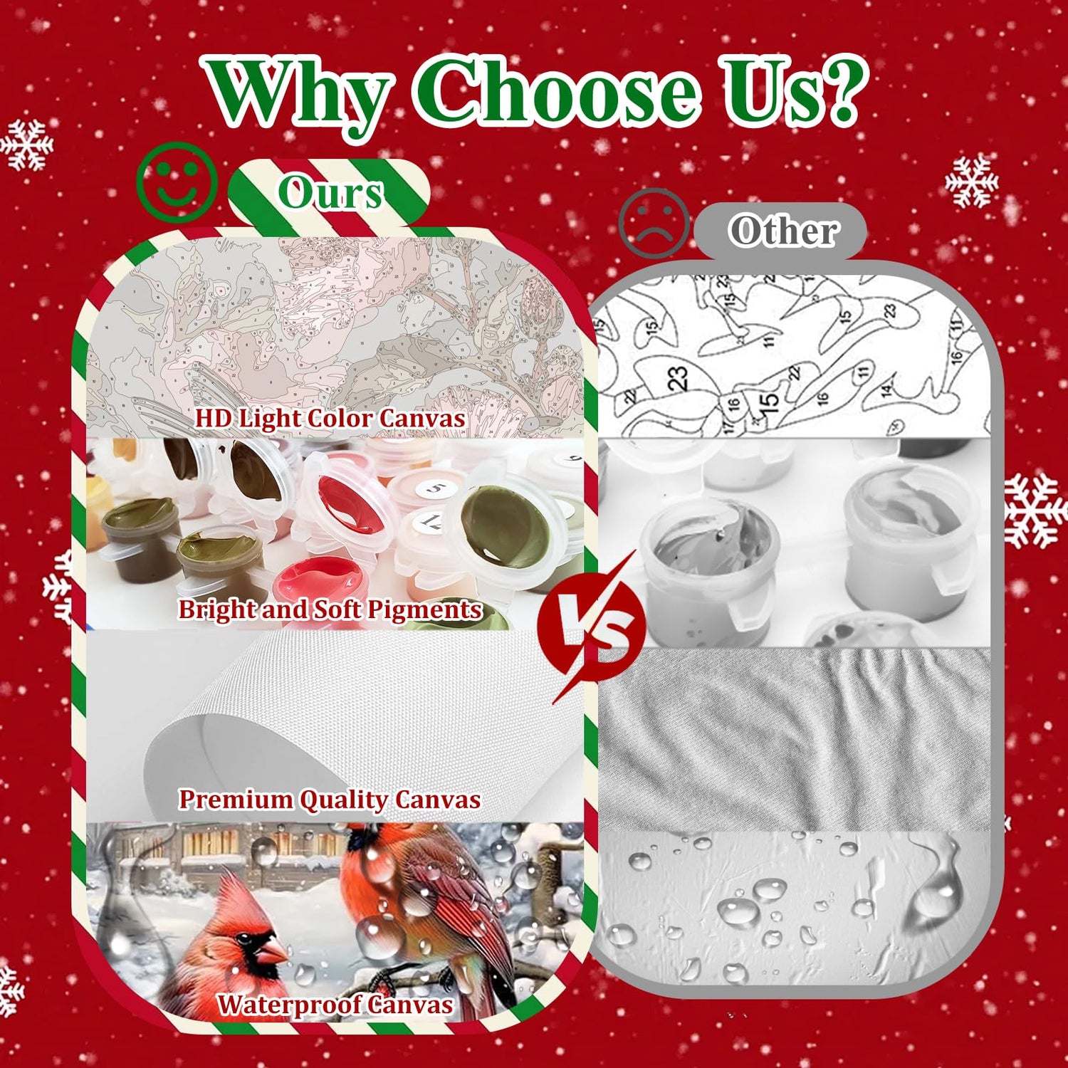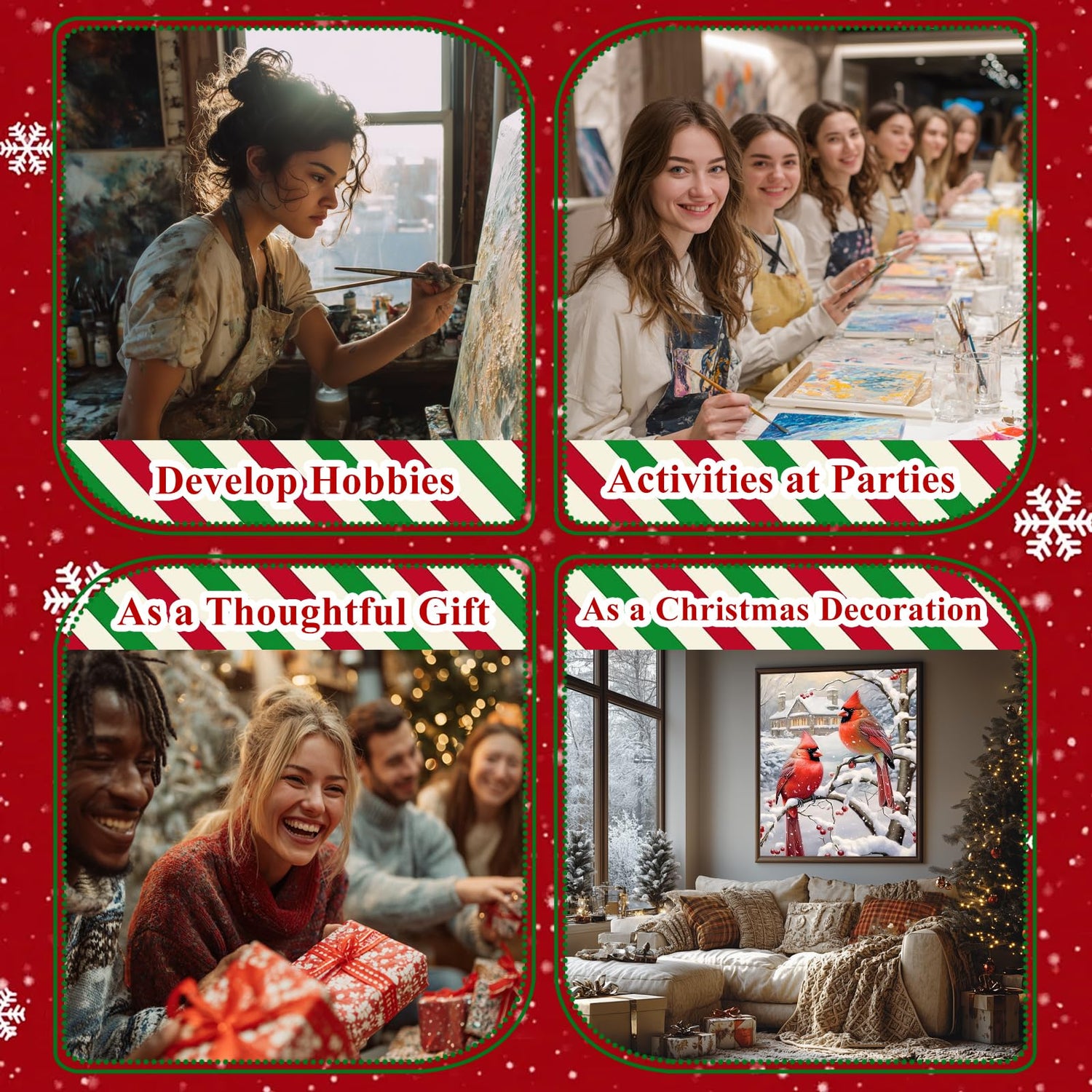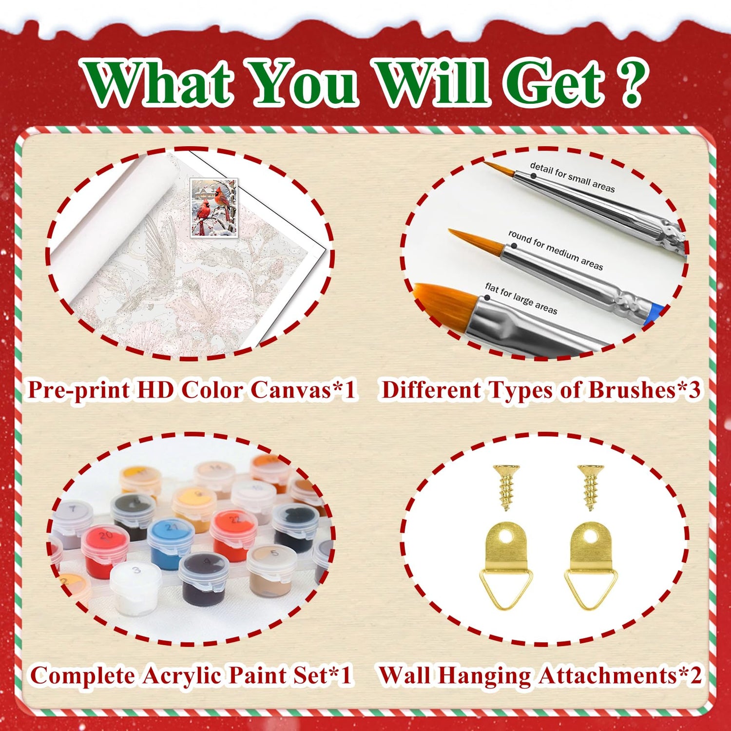 - Cardinals Theme: Bring winter serenity to your home with our Cardinals in Snow Paint by Numbers Kit for Adults! This paint by numbers set features vibrant red cardinals perched on snow laden branches, with a cozy cottage in the background. HD Lines make capturing every detail easy. Turn colors into a peaceful, holiday inspired escape add this charming winter scene to your space, no skills needed!