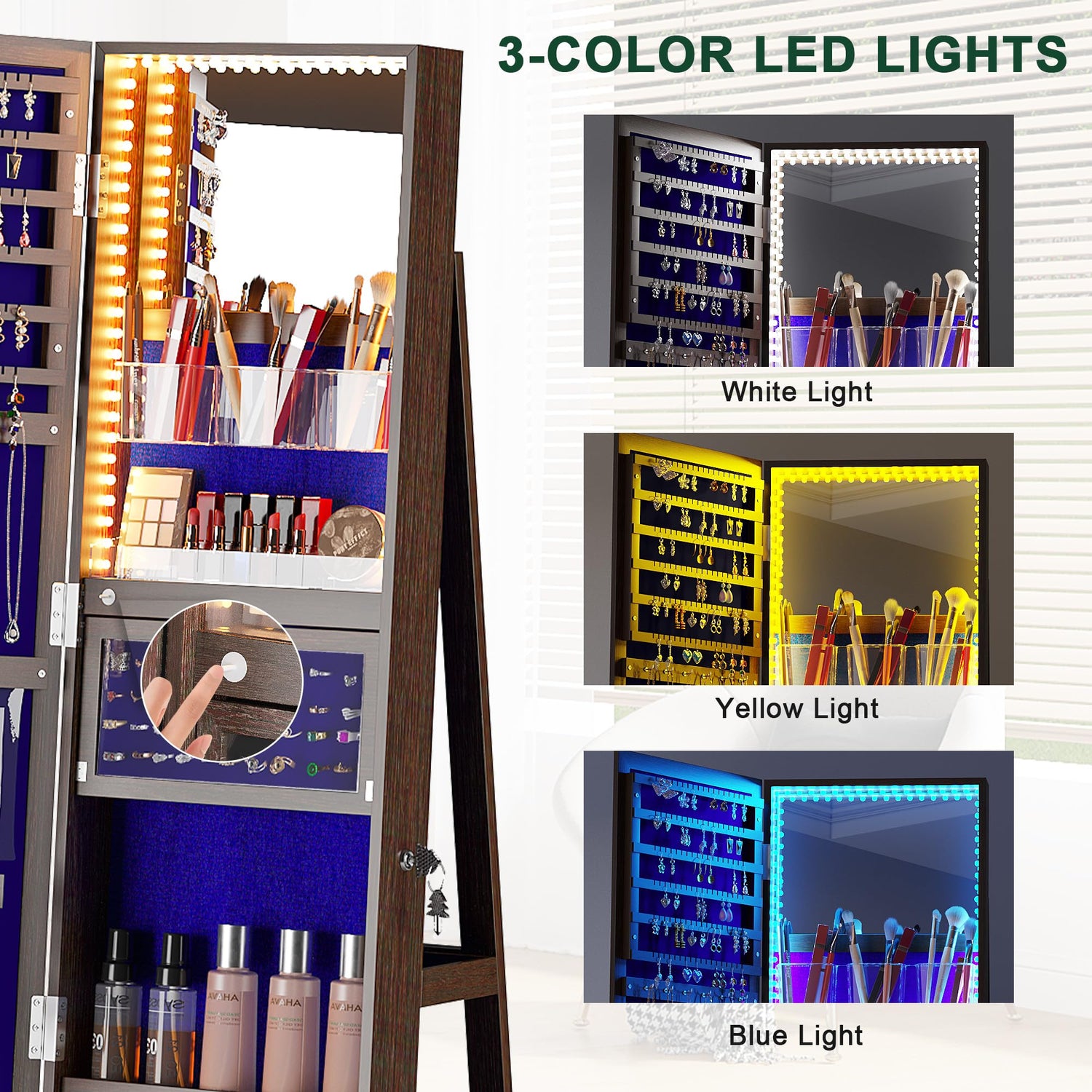 - 💡 【3-Color Light and Folding Makeup Rack 】Built-in LED makeup mirror and folding acrylic shelf, convenient to put cosmetics, jewelry, etc. Velvet inside to protect all your jewelry does not fade, is your makeup must choose.